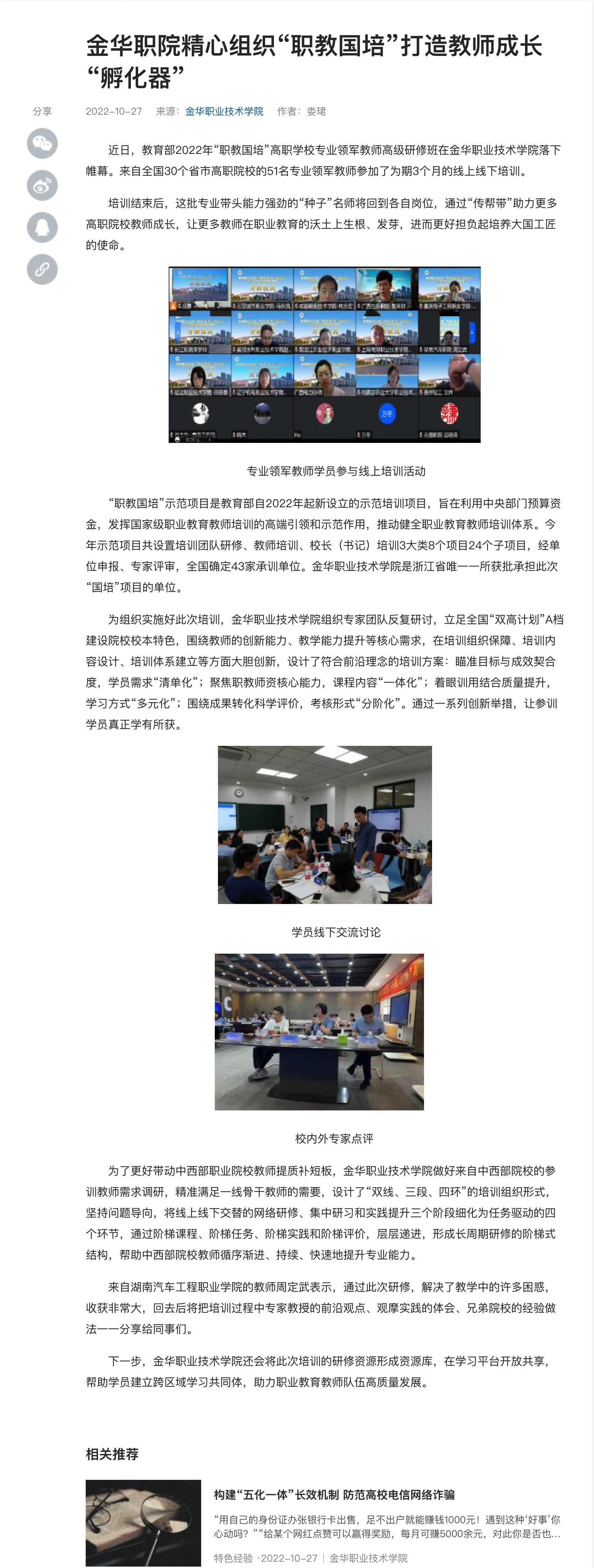 中国教育网络电视台:金华职院精心组织“职教国培”打造教师成长“孵化器”