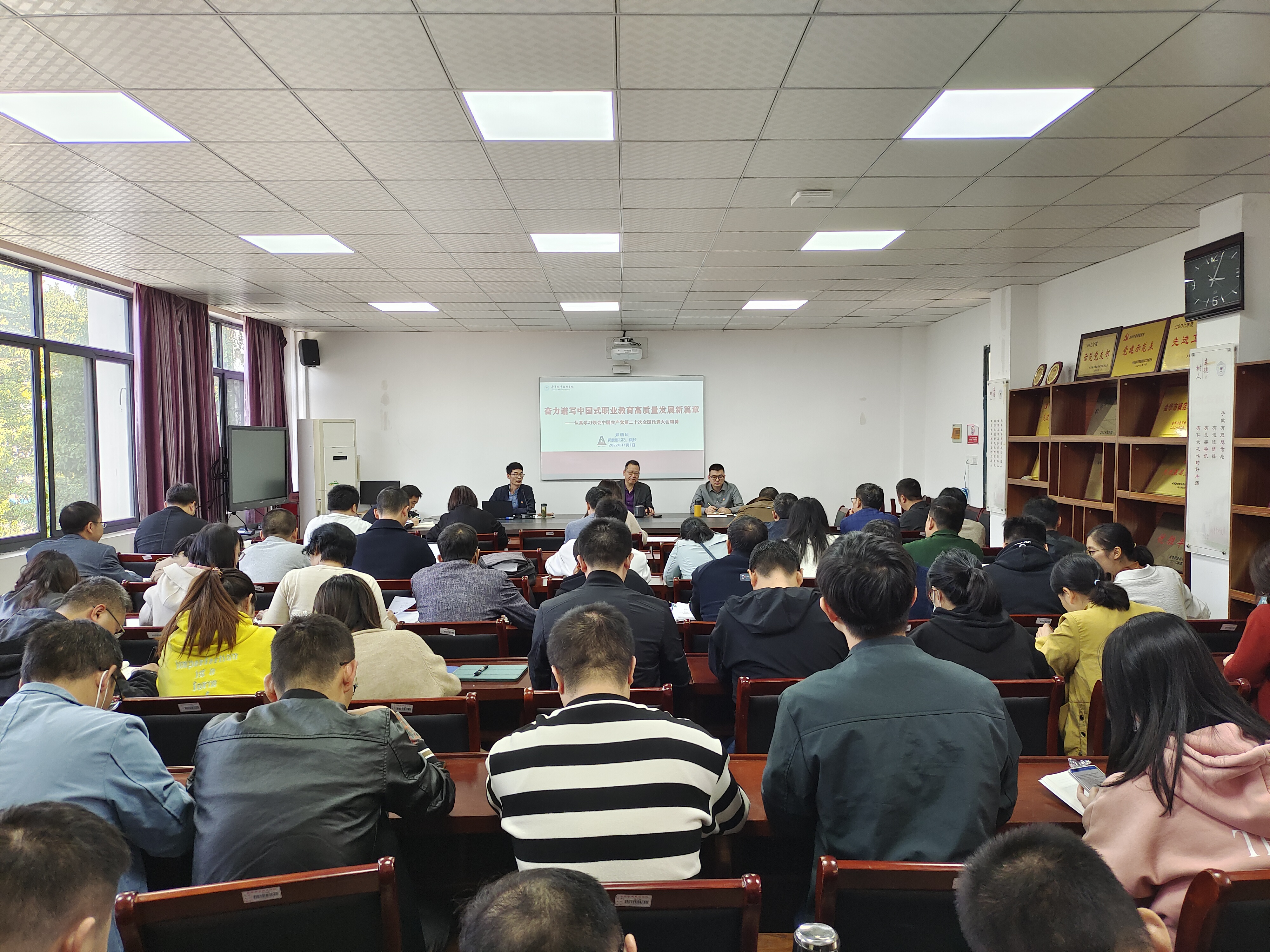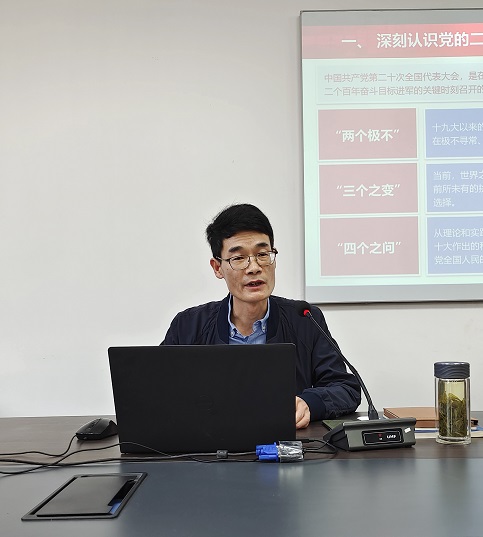 11月1日下午,建筑工程学院组织全体教职工开展党的二十大精神学习,学院院长郑朝灿以“奋力谱写中国式职业教育高质量发展新篇章”为题,作主题党课。