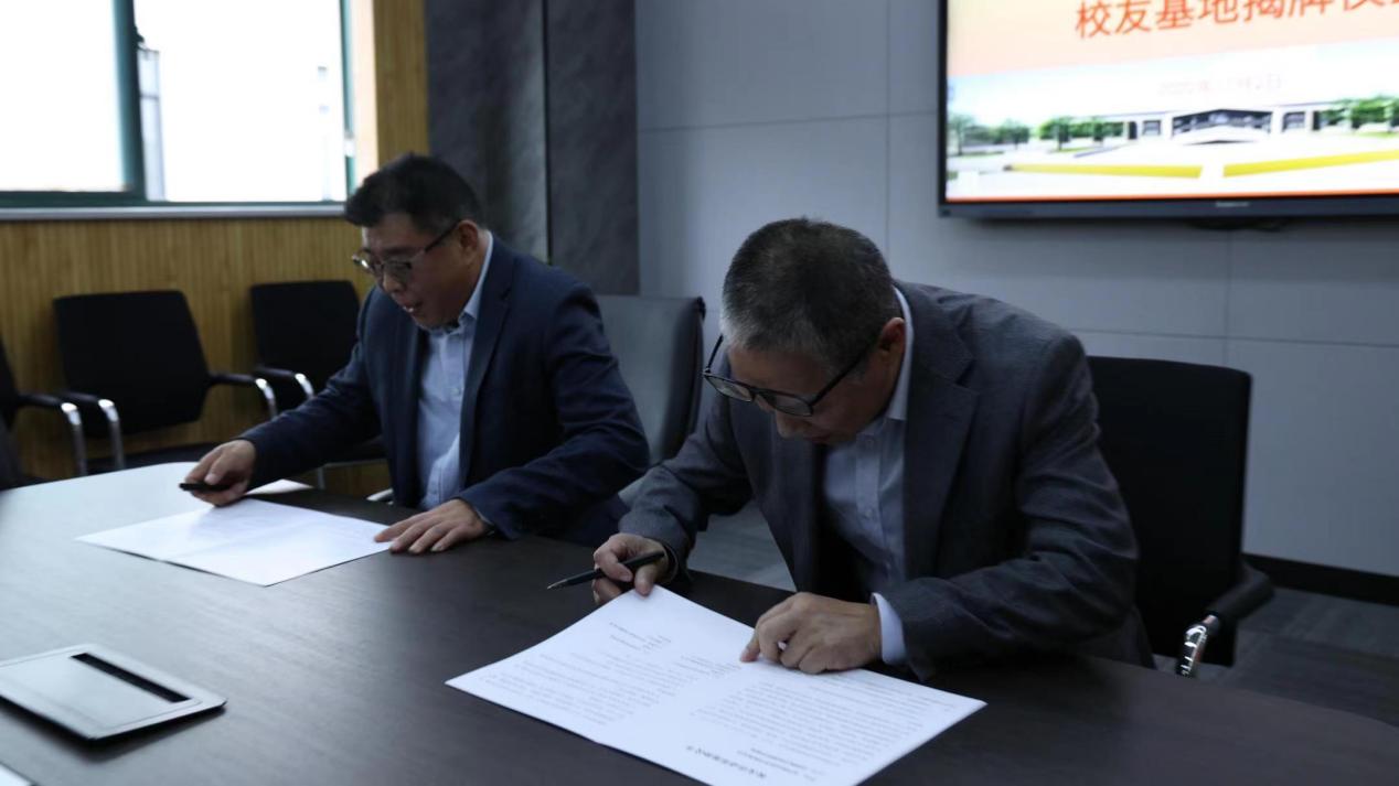 仪式中,郭航鸣代表校友会与企业签订协议书,刘鲁平和施卫明一同为基地揭牌,代表着金职航空校友活动基地正式成立。基地将在未来不断加强校友之间、校友与母校之间的联系,打造成为金职校友们的特色空间和重要阵地。