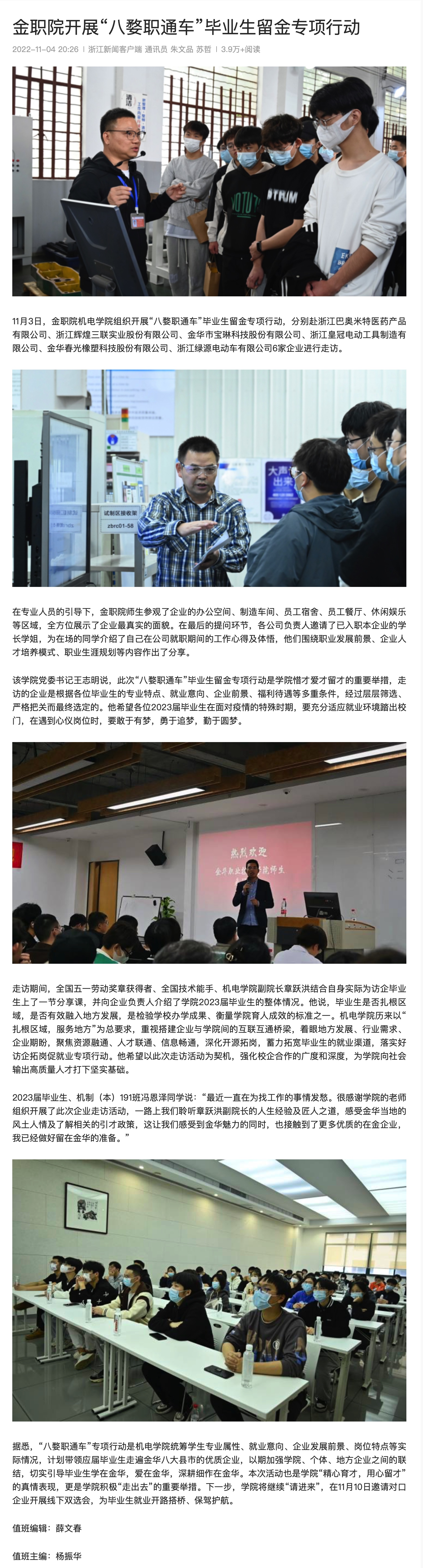 浙江新闻客户端:金职院开展“八婺职通车”毕业生留金专项行动
