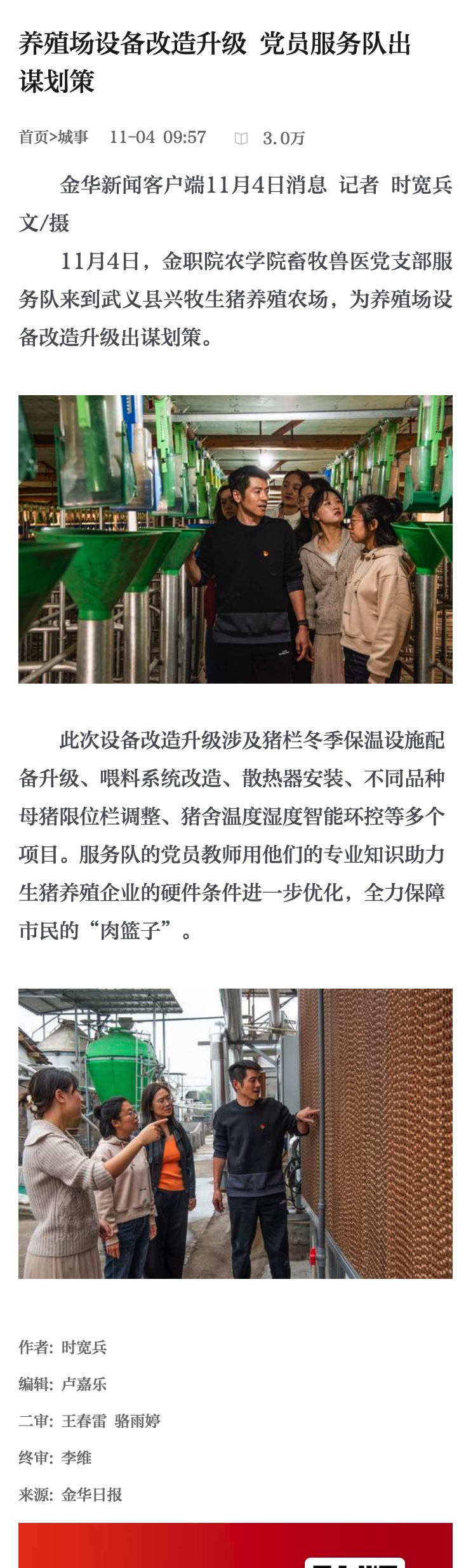 金华新闻客户端:养殖场设备改造升级 党员服务队出谋划策