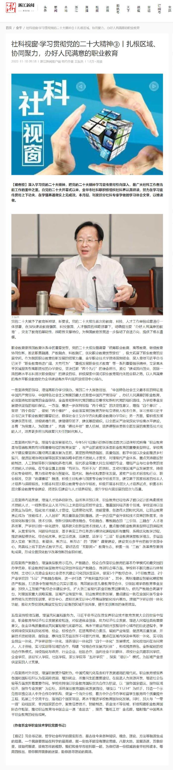 浙江新闻客户端:社科视窗·学习贯彻党的二十大精神③丨扎根区域、协同聚力,办好人民满意的职业教育