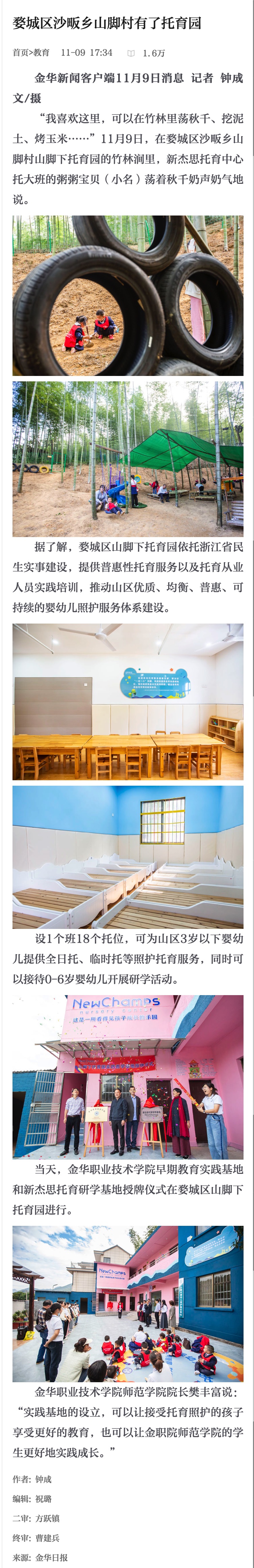 金华新闻客户端:婺城区沙畈乡山脚村有了托育园