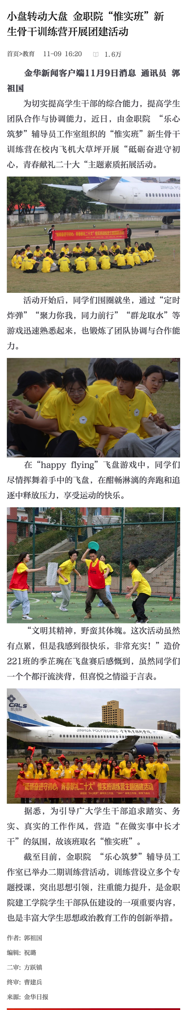 金华新闻客户端:小盘转动大盘 金职院“惟实班”新生骨干训练营开展团建活动