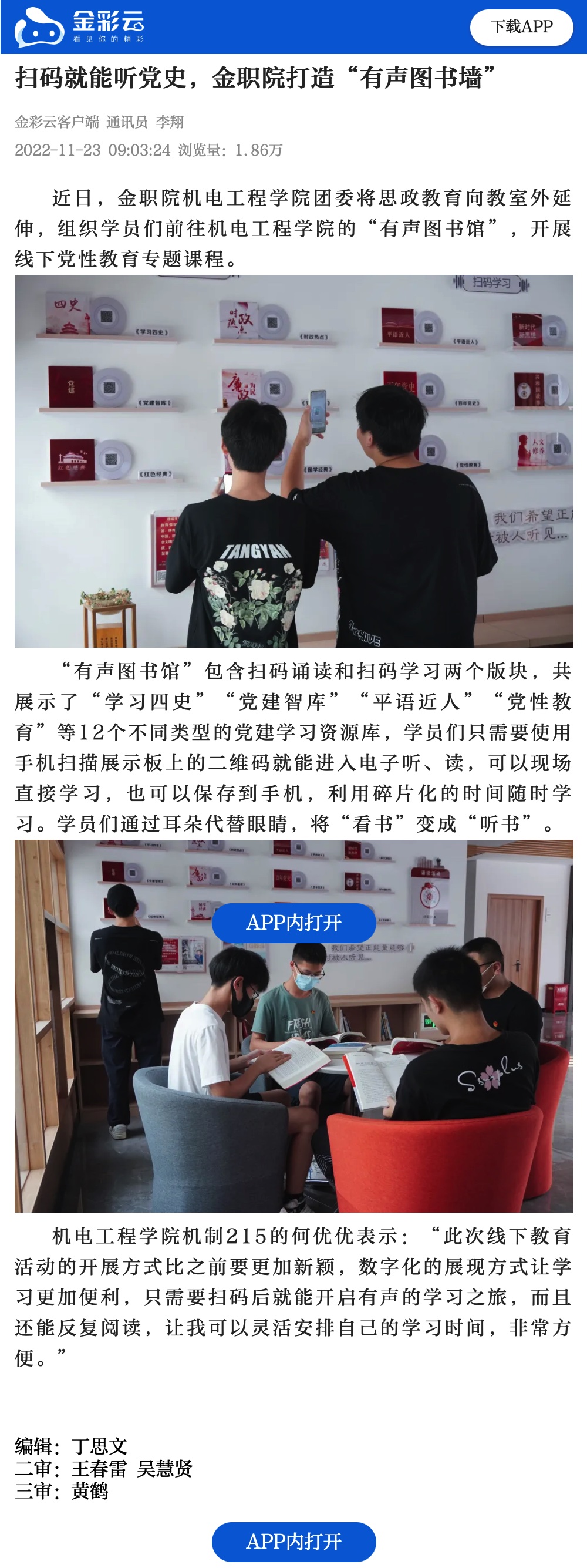 金彩云:扫码就能听党史,金职院打造“有声图书墙”