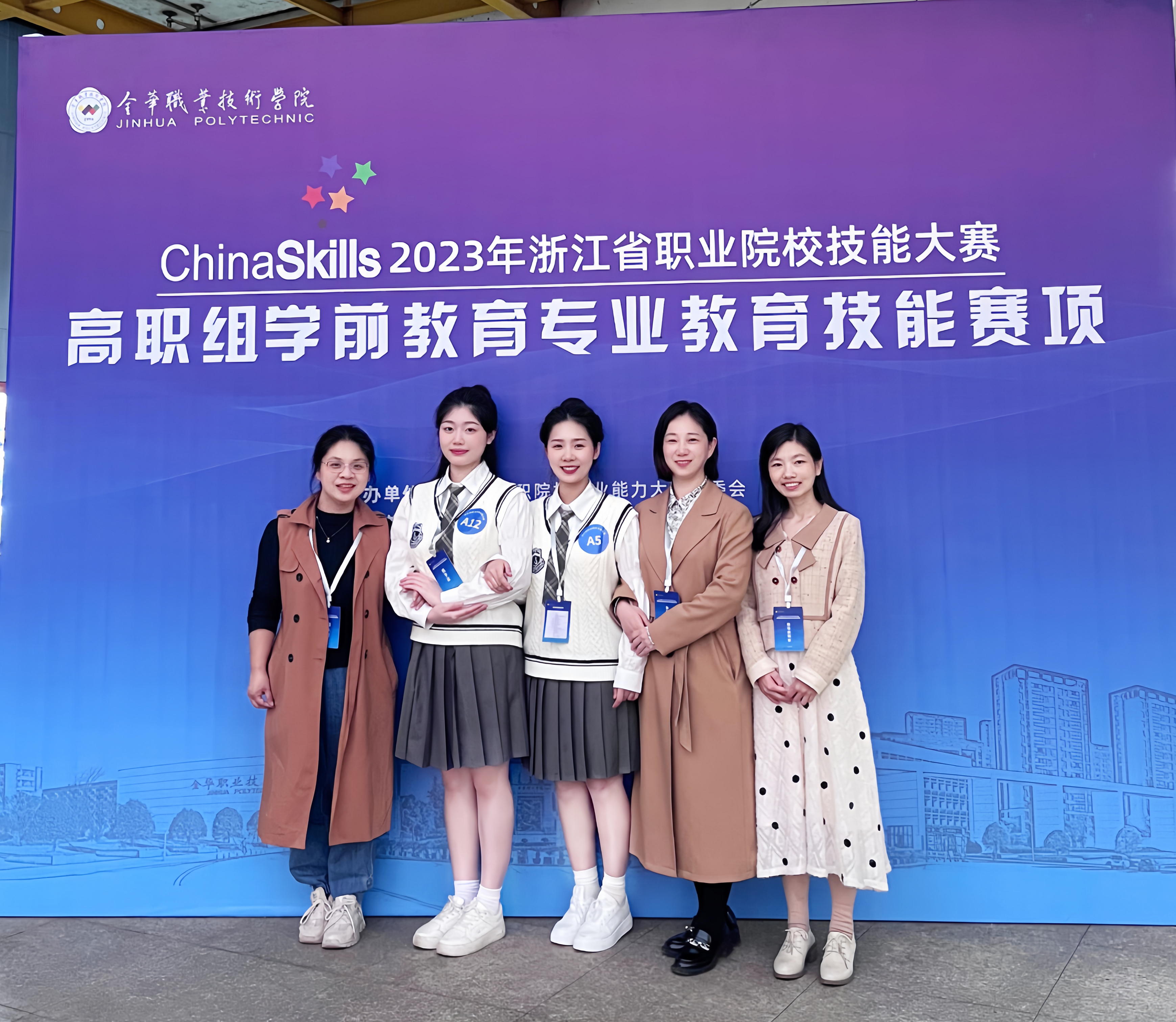 4月7日至8日,2023年浙江省职业院校技能大赛高职组“学前教育专业教育技能”赛项在金华举办,来自宁波幼儿师范高等专科学校、绍兴职业技术学院、杭州科技职业技术学院等7所高职院校的代表队参赛。经过一天激烈角逐,由金华职业技术学院师范学院宋晟、陈芳艳两位教师指导的王珊珊、林迎新两位同学组成的参赛团队表现出色,荣获本次大赛一等奖。