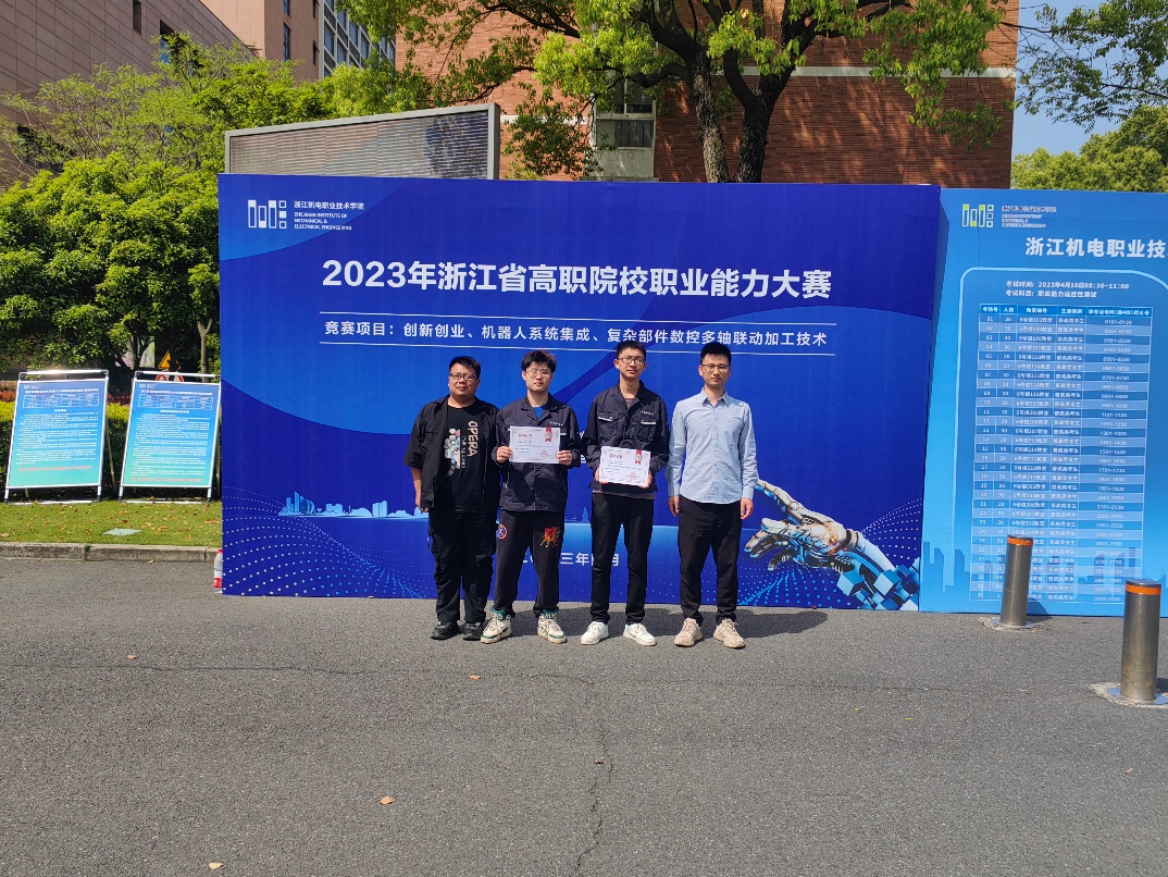 近日,2023年浙江省职业院校技能大赛高职组“机器人系统集成”赛项在浙江机电职业技术学院举行,共有来自全省15所高职院校的15支代表队参加。经过激烈角逐,金华职业技术学院机电工程学院参赛选手陈品之、冯楼杰两位同学斩获一等奖。