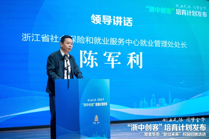 为全面贯彻党的二十大精神,进一步激发创业创新主体活力,更好发挥创业带动就业的乘数效应,推动高质量充分就业,4月28日上午,由金华市人力资源和社会保障局、金华市教育局、金华市科学技术局、金华市农业农村局、金华市退役军人事务局、共青团金华市委、金华市妇女联合会、金华职业技术学院联合主办,金华市就业服务中心、金华职业技术学院创业学院承办的“浙中创客”培育计划发布暨金华市“职引未来”校园招聘活动在金华职业技术学院举办。金华职业技术学院校长梁克东、省社会保险和就业服务中心就业管理处处长陈军利、市人力资源和社会保障局党组成员副局长张政出席了发布会。