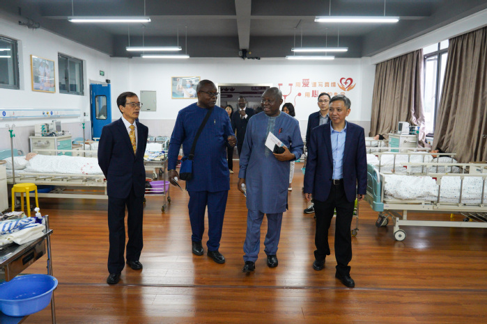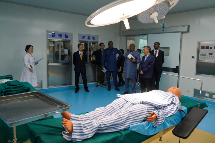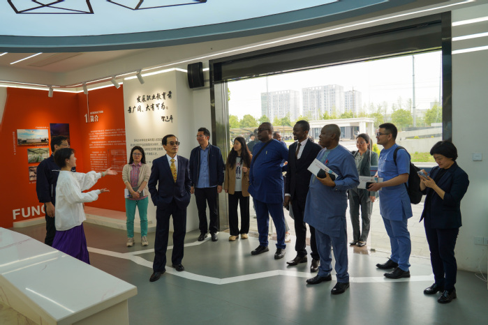 查尔斯·阿瑞兹丘克武·伊圭校长一行实地考察了学校智能化精密制造产教园和医学院仿真医院。通过听取介绍、询问交流、项目体验等方式,深入了解学校在校企合作、产教融合等方面的情况,以及实现高质量人才培养的有关经验,对学校职业教育发展取得的成果赞赏有加。他指出,希望以此次来访为契机,能够与学校在人才联合培养培训、不同学科领域的交流和成果转化等方面开展交流合作。