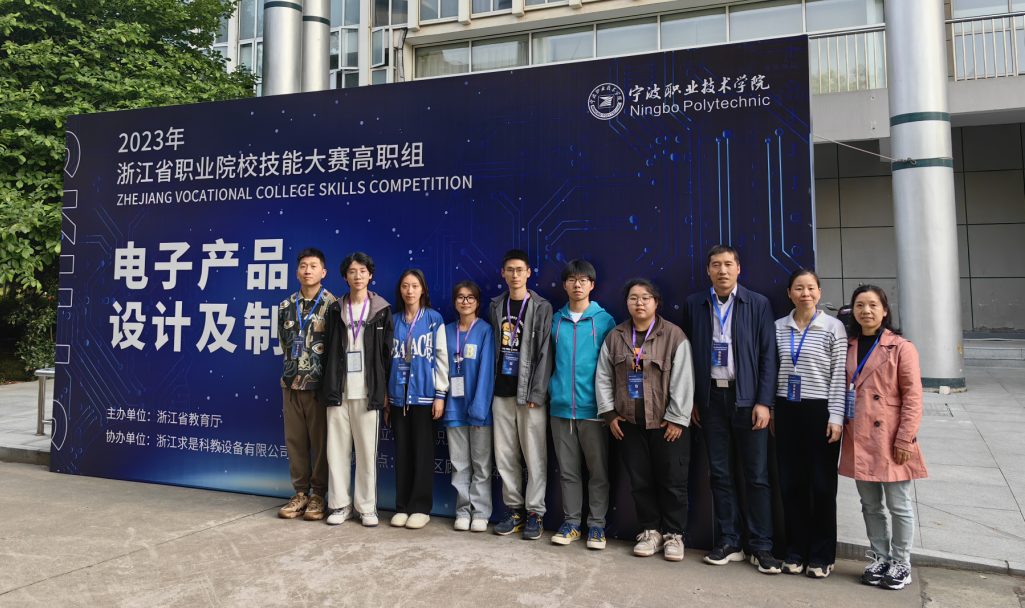 近日,2023年浙江省职业院校技能大赛高职组“电子产品设计及制作”赛项在宁波职业技术学院举办,来自全省24所高职院校46支参赛队共138名选手参加。经过历时6小时的激烈角逐,由金华职业技术学院信息工程学院(怀卡托国际学院)廖任秀、陈拓、陈桂兰三位教师指导的李逸帆、王浩、毛翔三位同学组成的团队获比赛一等奖,江锦豪、屠镔烨、吴艳三位同学组成的团队获比赛二等奖。