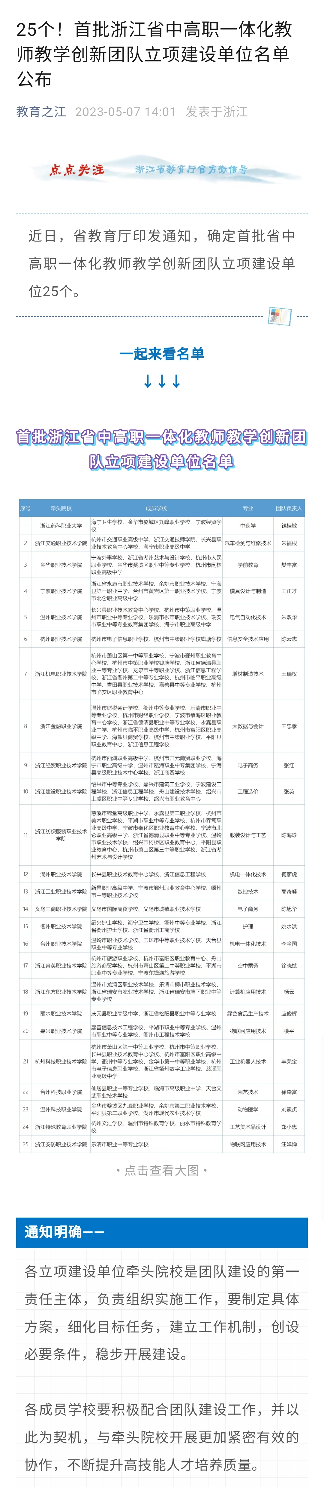 教育之江:25个!首批浙江省中高职一体化教师教学创新团队立项建设单位名单公布