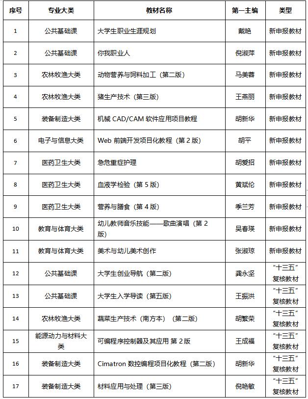 据悉,本次共有7262种教材拟入选首批“十四五”职业教育国家规划教材,包括新申报入选的教材3331种, “十三五”复核教材3573种,首届全国教材建设奖职业教育类获奖教材314种和中职七门公共基础课程教材44种。