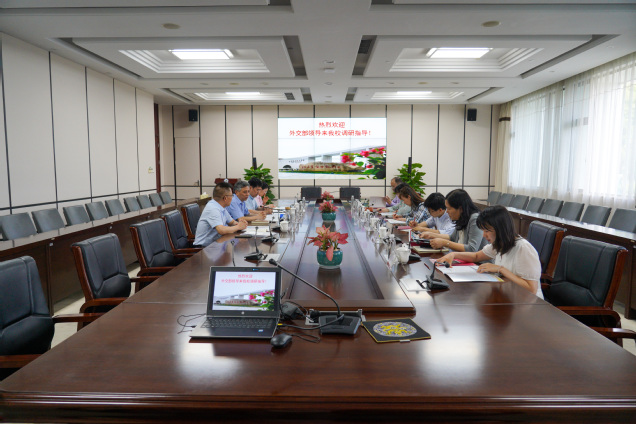 5月19日,外交部非洲司公使衔参赞贺红燕、非洲司论坛办副主任朱立一行调研金职院对非职业教育工作。金华市外办主任陈艳、副主任沈利群,金职院校长梁克东、副校长陈海荣、相关职能部门负责人陪同调研。