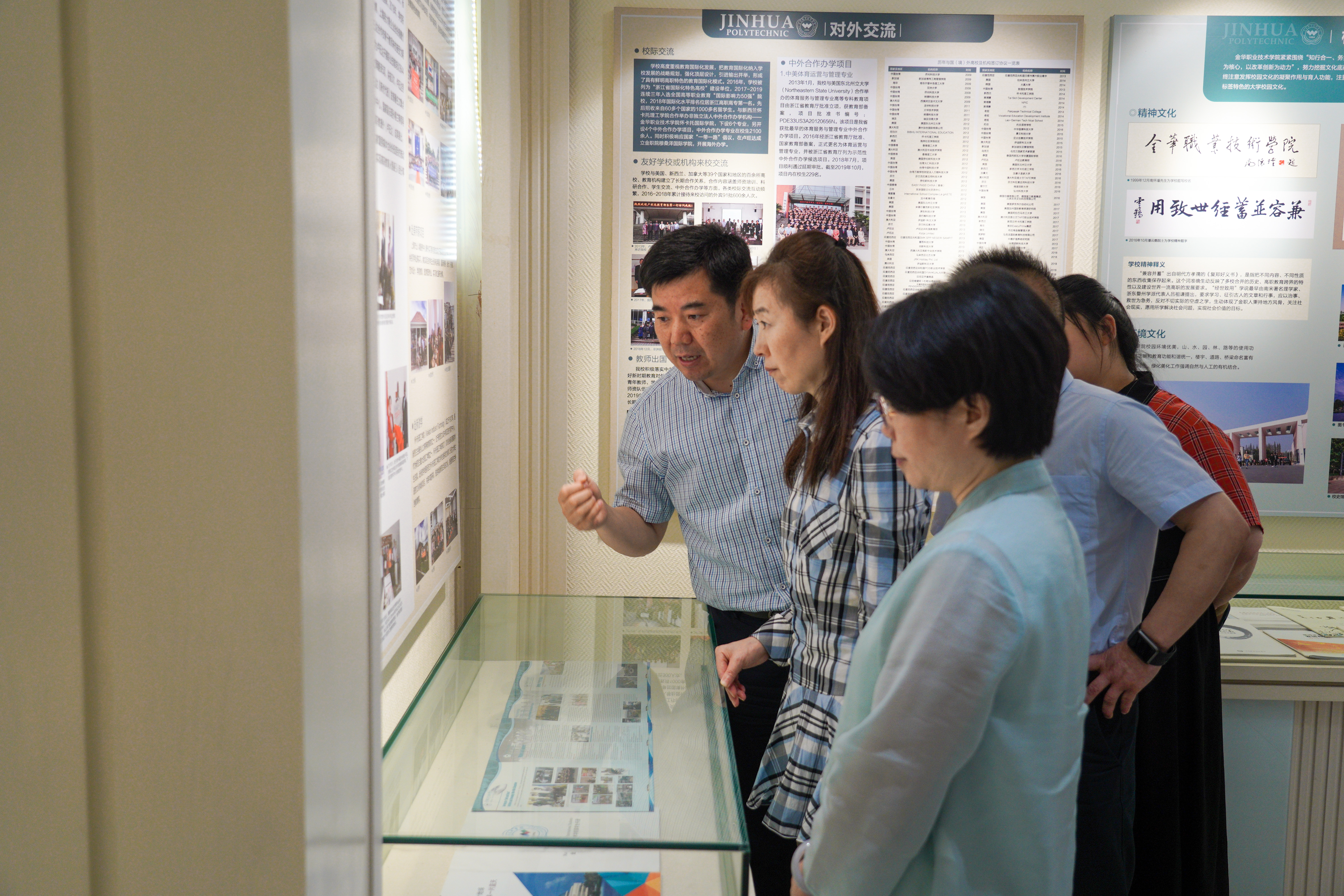 座谈会前,贺红燕一行走访了校史馆,深入了解学校“双高”建设和更高质量发展等工作的开展情况。