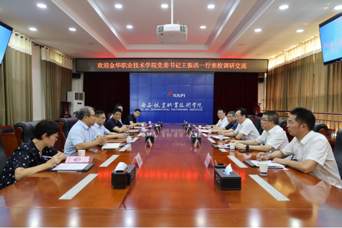 为促进航空产业与职业教育的深度融合,搭建航空领域产教综合体,加快航空类技术技能人才的高质量培养,8月3日至5日,金职院党委书记王振洪、办公室主任刘鲁平及机电工程学院相关负责人一行赴西安航空类院校及企业开展调研走访。西安航空职业技术学院党委书记周岩、中航富士达科技股份有限公司创始人兼名誉董事长郭建雄接待了学校一行。