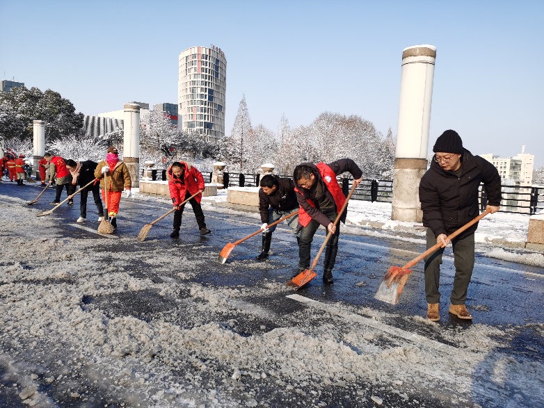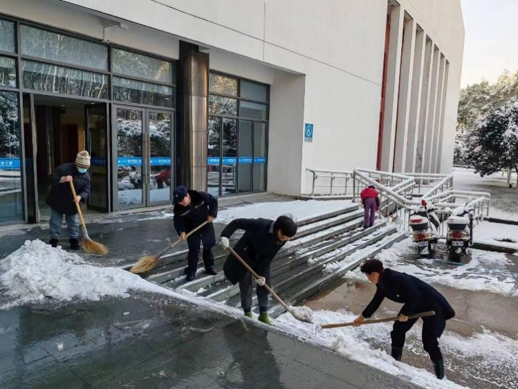 1月22日,金华市迎来今年首场强降雪,积雪厚度超过10厘米。为应对此次低温雨雪天气带来的不利影响,1月23日清晨,后勤中心紧急部署、全面动员,楼寓管理科全体人员积极响应,以雪为令,迅速行动,全力保障师生员工出行安全,最大限度减少积雪结冰带来的不利影响。