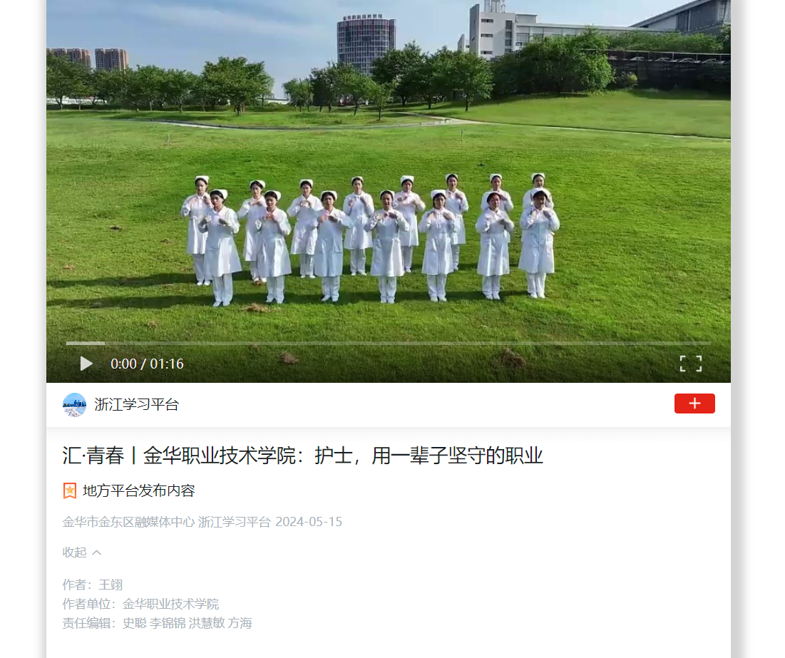 学习强国 浙江学习平台:汇·青春丨金华职业技术学院:护士,用一辈子坚守的职业