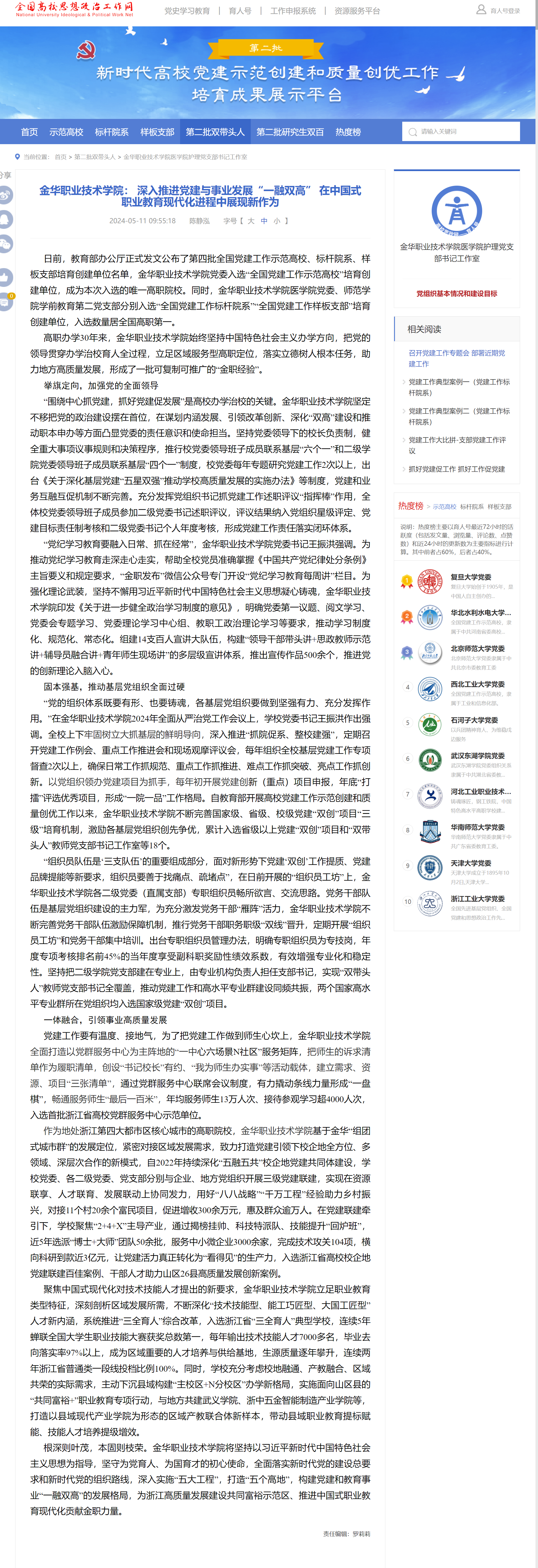 全国高校思想政治工作网:金华职业技术学院: 深入推进党建与事业发展“一融双高”在中国式职业教育现代化进程中展现新作为