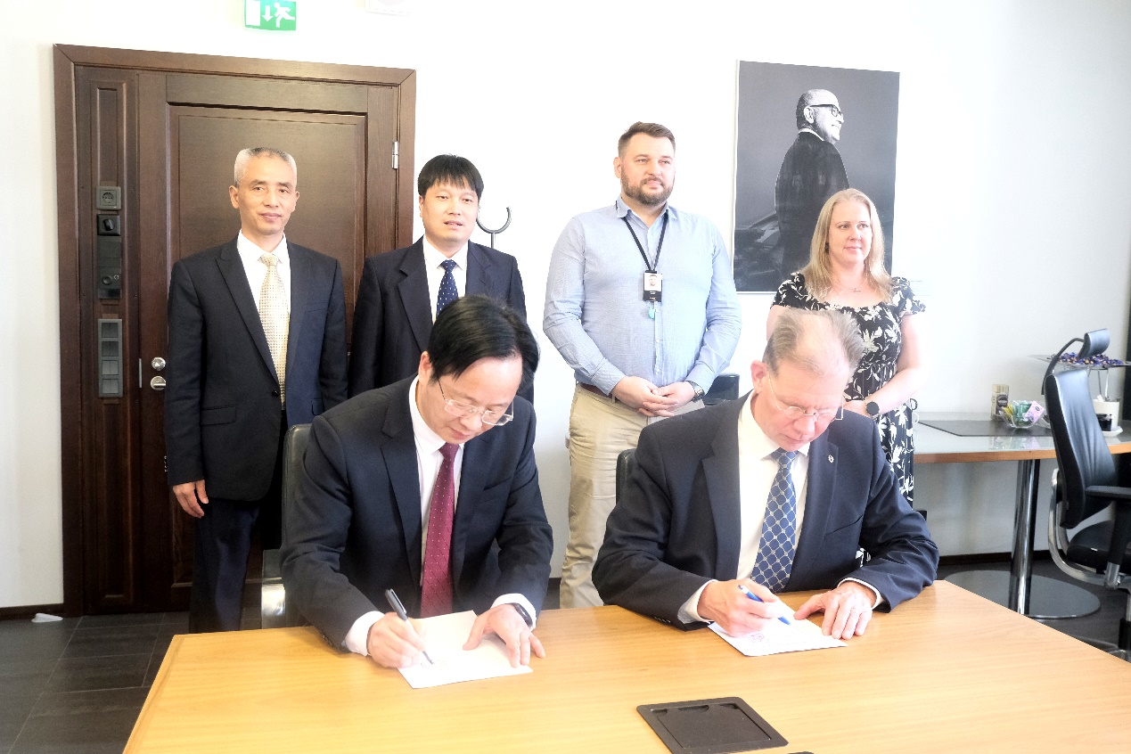 5月27日,金华职业技术学院与芬兰东南应用科技大学续约合作框架协议仪式在芬兰举行。续约仪式上,王振洪、赫伊基•萨斯塔莫宁分别致辞,回顾了20年来双方合作所取得的成果,并就今后的合作进行了深入交流和探讨。双方经过磋商签署了《金华职业技术学院与芬兰东南应用科技大学学术科研合作协议》。本次活动标志着两校合作翻开了新篇章,未来双方将进一步深化在教学、科研、学生等多方面的交流与合作,共同探索教师短中期进修、跨国科研合作、学生双学位授予等一系列多元化合作,从而促进中芬人文交流往来,为推动构建人类命运共同体贡献力量。