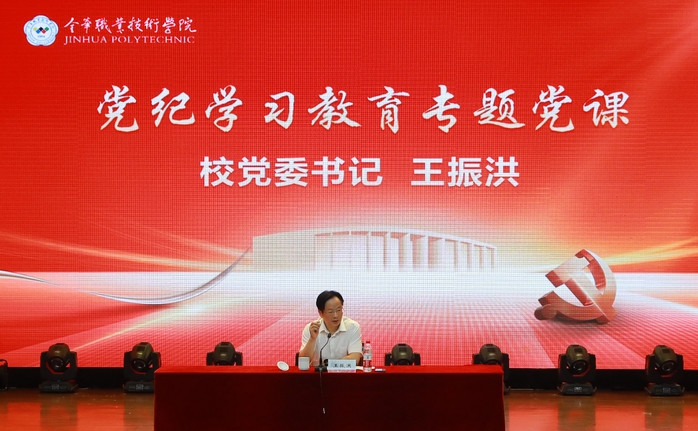 王振洪从深刻领会纪律建设的重大意义、坚决恪守六大纪律的思想根基、奋力谱写高质量发展全新篇章等三个方面讲授了一场内容丰富、通俗易懂的专题党课,加深了师生党员对《中国共产党纪律处分条例》的认识理解。