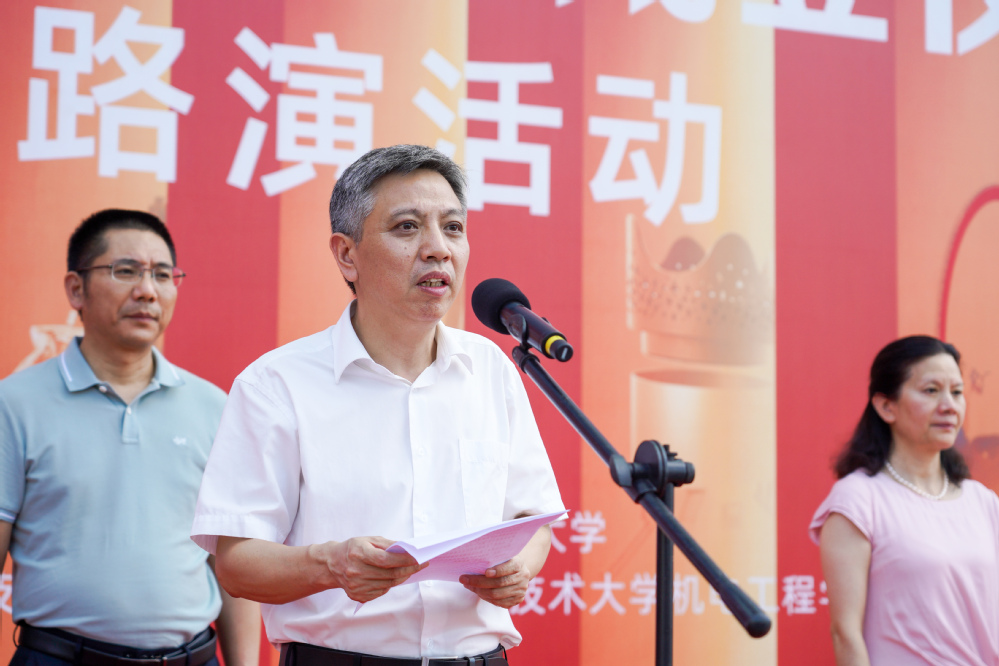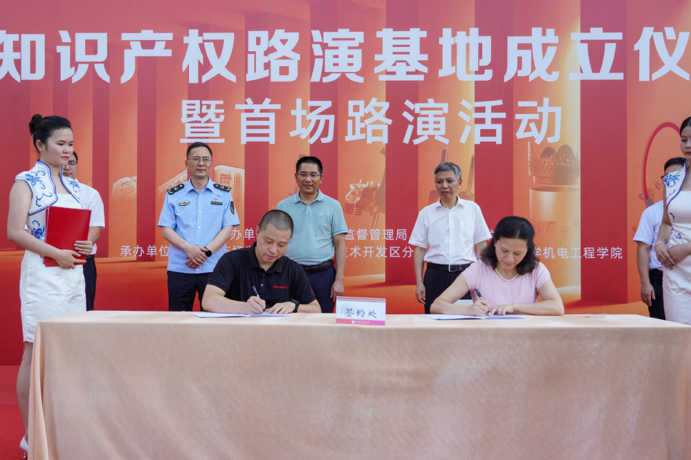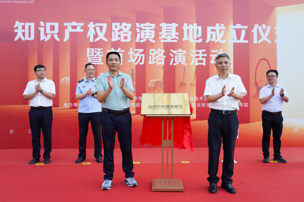 7月5日,全国首家知识产权路演基地在金华职业技术大学成立。金华市市场监督管理局副局长杜群峰,金华市市场监督管理局开发区分局副局长叶格,校长梁克东,科技处、机电工程学院负责人,学校专利发明人代表,50余家企业代表参加了成立仪式。