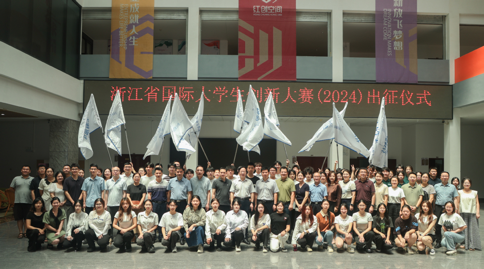 出征仪式上,学校为大学生创新大赛暨浙江省国际大学生创新大赛(2024)选拔赛获奖项目颁奖。