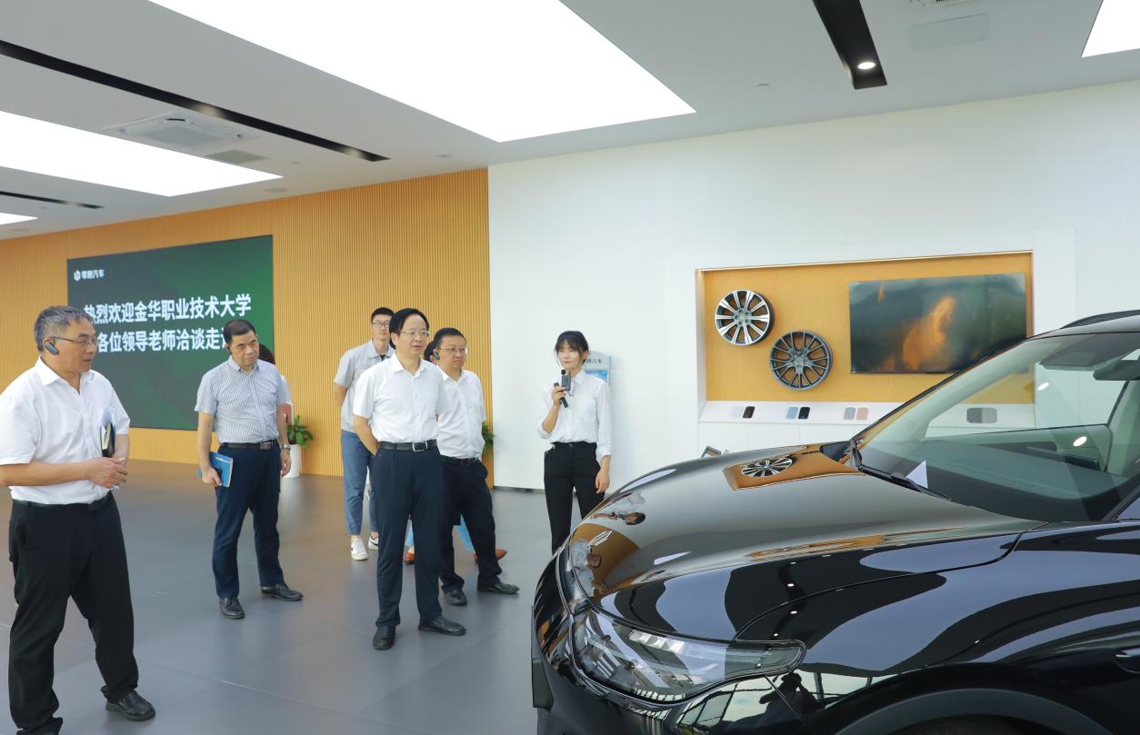 党委书记王振洪一行走进零跑汽车有限公司,详细了解该公司的发展历程、技术研发、制造体系和金华基地等情况,现场参观该公司的冲压、焊装、涂装、总装、电池和电驱等多个车间和展示厅,围绕新能源汽车行业的产教融合、平台搭建、人才培养、资源共享等内容与企业相关负责人开展了深入交流。