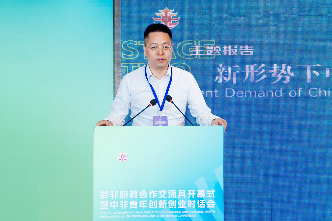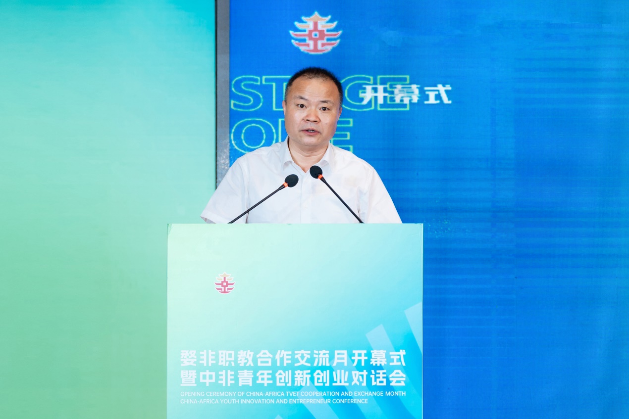 陈海荣在致辞中表示,自2018年金华举办中非经贸论坛暨文化交流活动以来,学校从最初选派国际志愿者为大会提供志愿服务,到近三年连续举办中非职业教育论坛,将职业教育国际合作紧密融入浙非婺非合作的大场景,为职业教育更好服务区域经济和国家战略体现金职担当。多年来,学校重点与卢旺达开展职教领域的深度合作,推动中国职教标准、资源、装备“走出去”。学校先后入选“未来非洲-中非职业教育合作计划”首批试点院校、全国首批鲁班工坊运营项目、教育部中文工坊,以及浙江省首批“一带一路‘丝路学院’”、第一批“小而美”境外项目,办学经验入选联合国教科文组织《学习者为中心的TVET教学》报告。他指出,作为“一带一路”教育行动的积极践行者,学校将勠力向新而行、向深拓展,聚力高质量培养非洲青年技能人才、高水平推进在非丝路学院建设和高水准开展婺非职教人文交流。