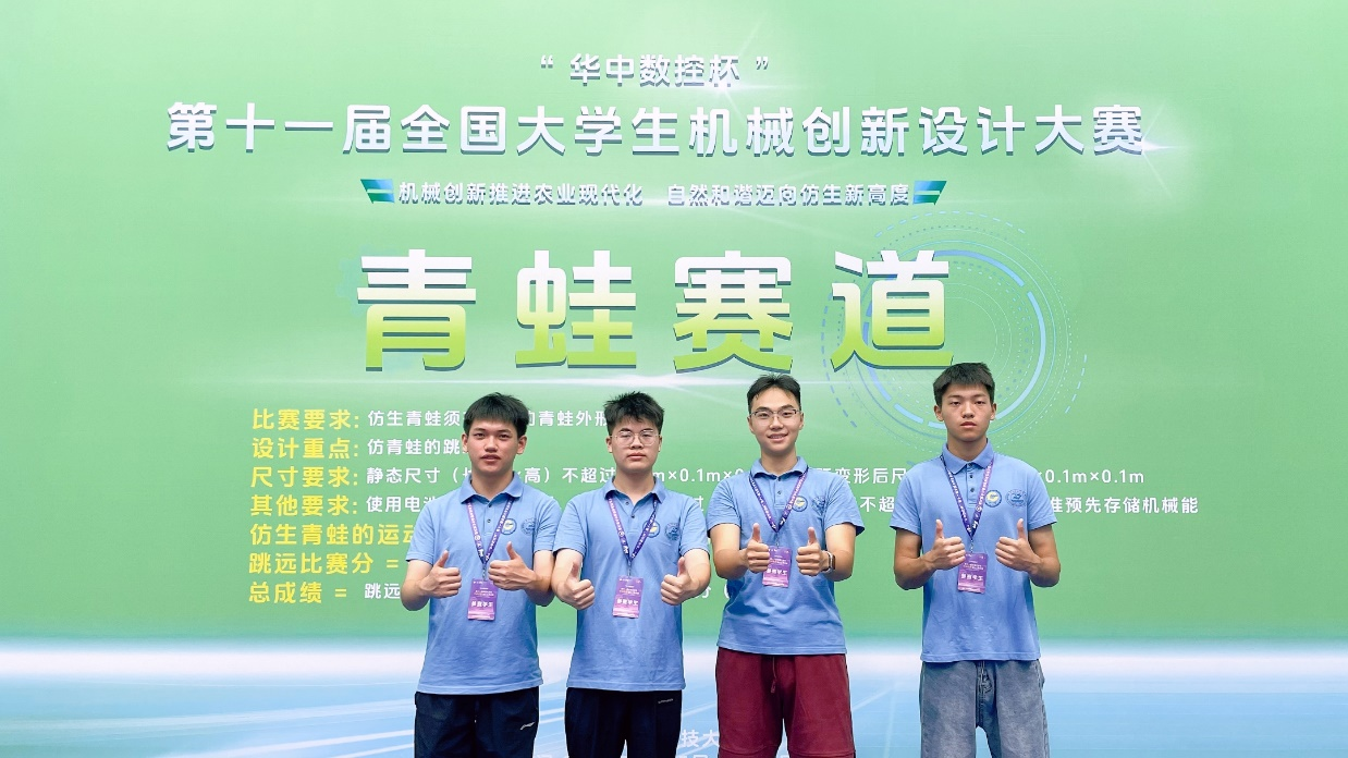 据悉,全国大学生机械创新设计大赛是以杨叔子院士为代表的老一代机械学科前辈于2002年倡导、发起的机械工程领域全国性大学生机械创新科技大赛,每两年举办一次,代表了全国大学生机械创新设计能力的最高水平。此次大赛对仿生青蛙提出的静态尺寸(小于10厘米)不准预先储能、动态尺寸(小于20厘米)能量释放的难题,困扰着全国参赛大学生。