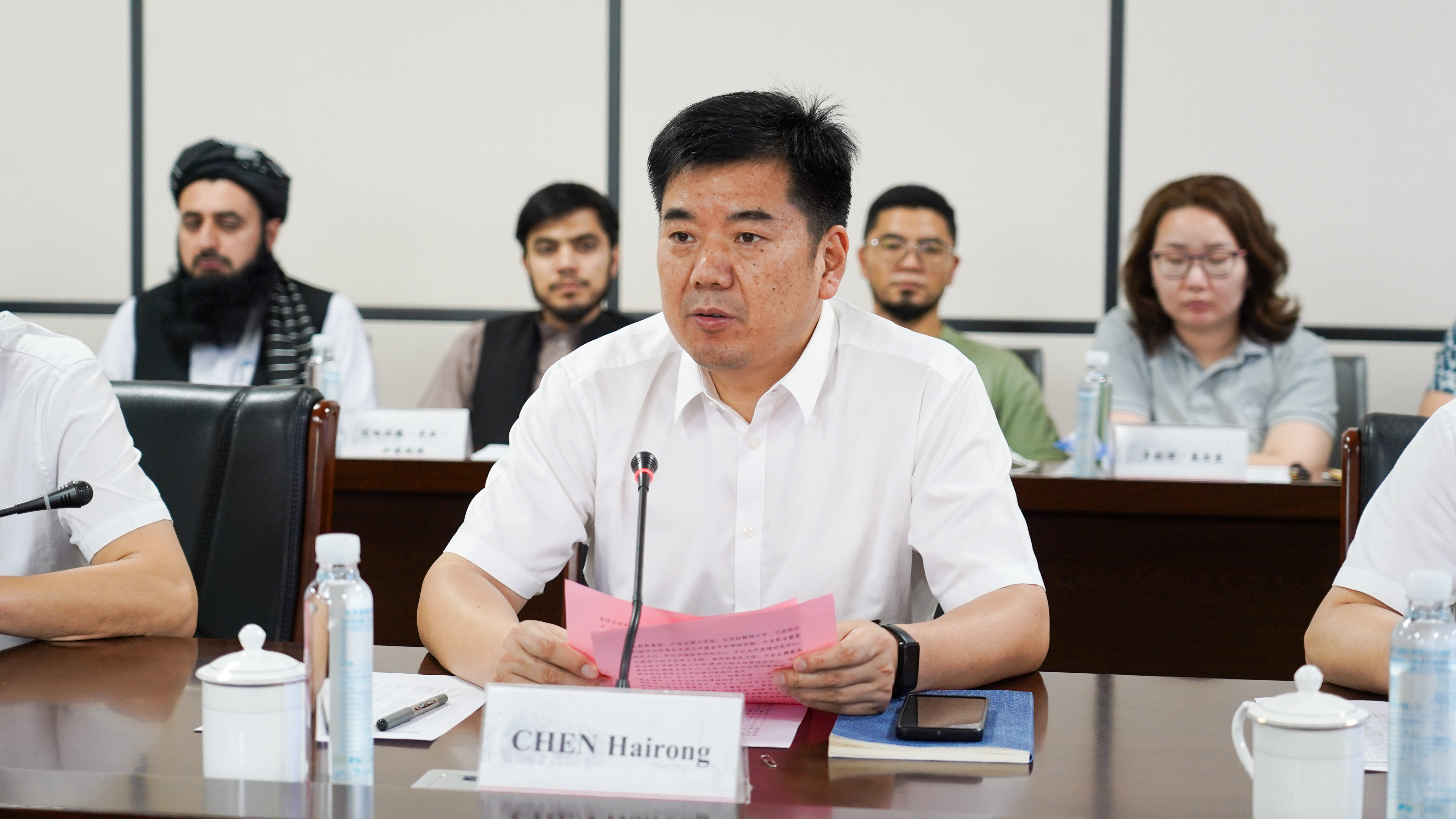 来自伊拉克埃尔比勒理工大学助理教授埃萨(Saad Khalis Essa Essa)作为本次研修班的学员代表发言。在发言中,他代表参与本次研修班的所有学员向金华职业技术大学为大家提供的学习机会表示感谢。他表示,本次参访为双方搭建了一个高层次的学术交流平台,通过了解金职大的职业教育办学理念和实践模式开阔自己的视野,同时也呼吁参与国的代表们能够在不同的领域开展形式多样的合作。