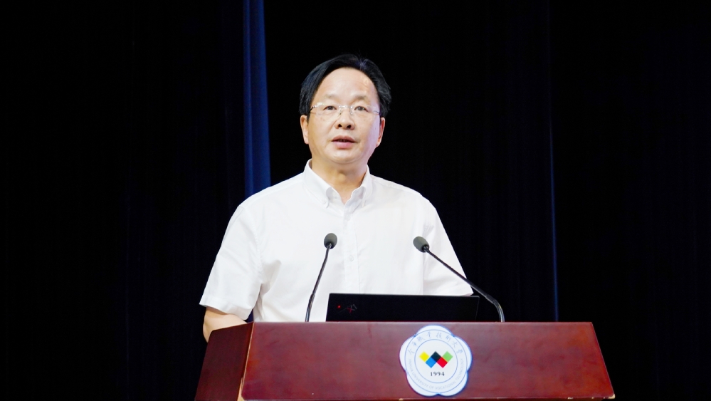 8月29日,中国职业技术教育学会会长、教育部原副部长鲁昕一行莅临金华职业技术大学调研,并作了题为《高质量发展技能类型高等教育 为全面创新培养新型劳动者》的专题报告。金职大党政领导班子,现职中层干部、科职干部、教师代表等近600名教职工在学校实验剧场聆听了报告。报告会由党委书记王振洪主持。