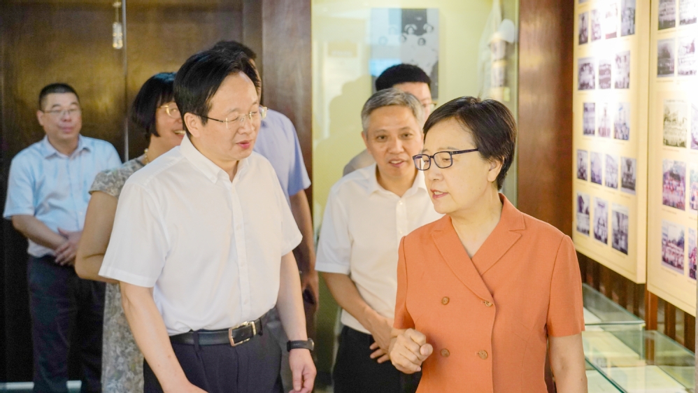 在校史馆,一张张老照片、一个个老物件生动再现了学校五校并轨、六校融合的历史沿革及迈入高职办学赛道以来的发展征程。鲁昕在参观过程中,详细了解了学校在不同历史阶段的办学使命和育人成果,对历代金职人薪火相传的进取精神、家国情怀表示认可与赞赏。鲁昕表示,从建校、并校、兴校到强校,深厚的历史底蕴是学校发展的宝贵财富,面对新时代新使命,要传承发扬学校精神,在守正创新中行稳致远,谱写学校高质量发展的历史新篇。