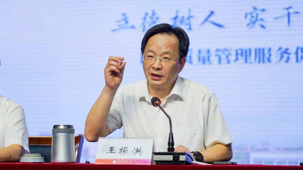 会上,王振洪对过去一学年学生工作取得的成绩给予了充分肯定。在分析当前形势的基础上,他指出,接下来的学生工作面临着诸多问题和挑战,并聚焦“育人目标”“生源结构”“就业环境”的变化提出了学生工作高质量发展的“三问”。