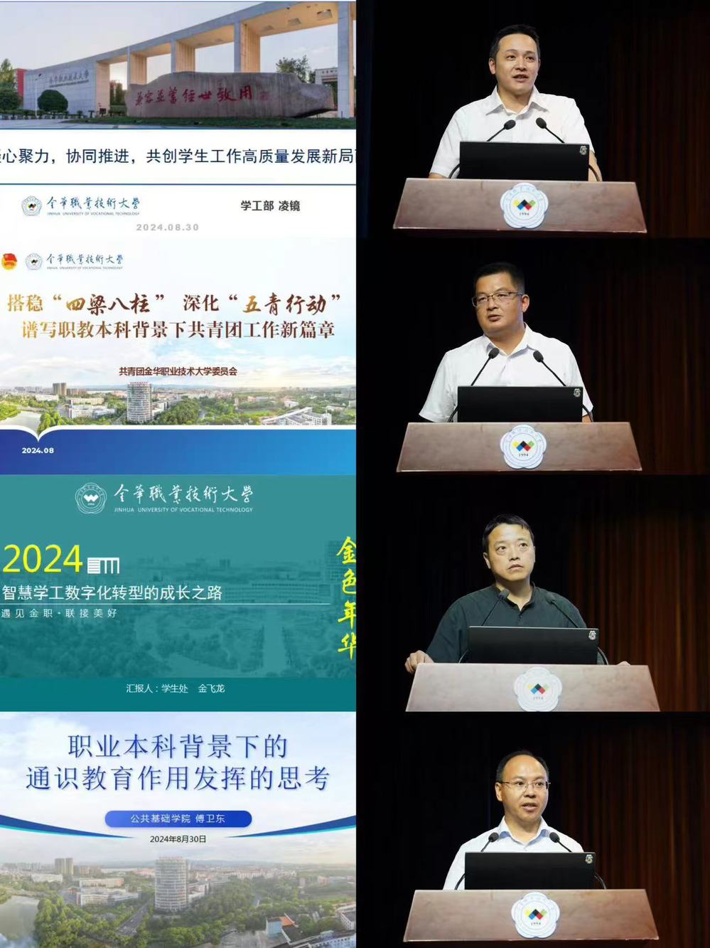 8月30日至31日,金华职业技术大学召开2024年暑期学生工作会议。大会以“立德树人,实干为魂,数字赋能,以高质量管理服务促成高水平人才培养”为主题,党委书记王振洪,党委副书记劳虓虓、楼伟民,副校长陈夙、卢小珍、陈海荣,党委委员、组织部长董晓晨,相关职能部门负责人,二级学院党委书记、分管学生工作院领导,学工办、团委负责人、全体辅导员及班主任,“主会场+分会场”共计600余人参加了第一阶段和第二阶段会议,第三阶段为各学院层面学生工作会议。