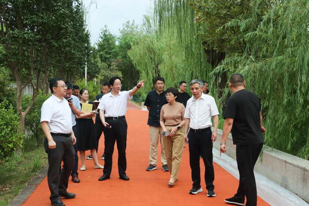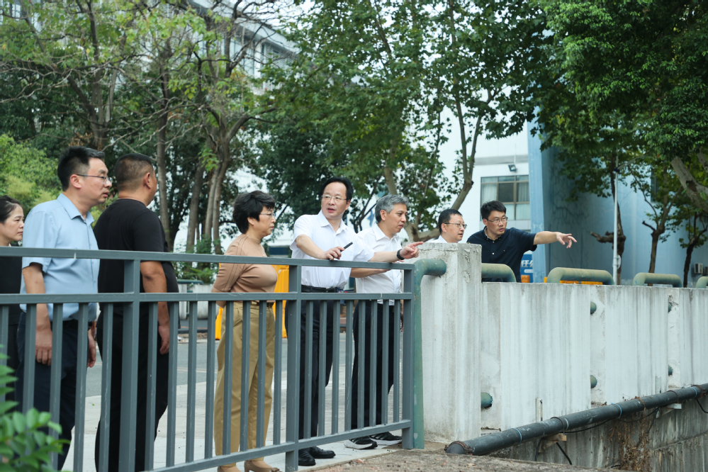 检查金湖水位、排水及在建塑胶绿道,提出应对举措