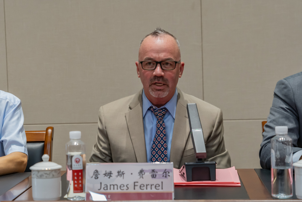 James Ferrell致辞各位新生。他表示,东北州立大学致力于为学生提供资源、支持和必要的指导,帮助学生茁壮成长,并为将来的职业生涯做好准备。东北州立大学和金华职业技术大学将加强合作,帮助全体新生顺利完成学术旅程。他希望全体新生都能抓住机遇、主动学习,积极参与跨文化活动,与同学融洽相处,培养全球化视野。他表示,期待未来在东北州立大学的校园里见到各位同学来美国学习交流,并在各自领域乃至更广泛领域作出卓越的贡献。