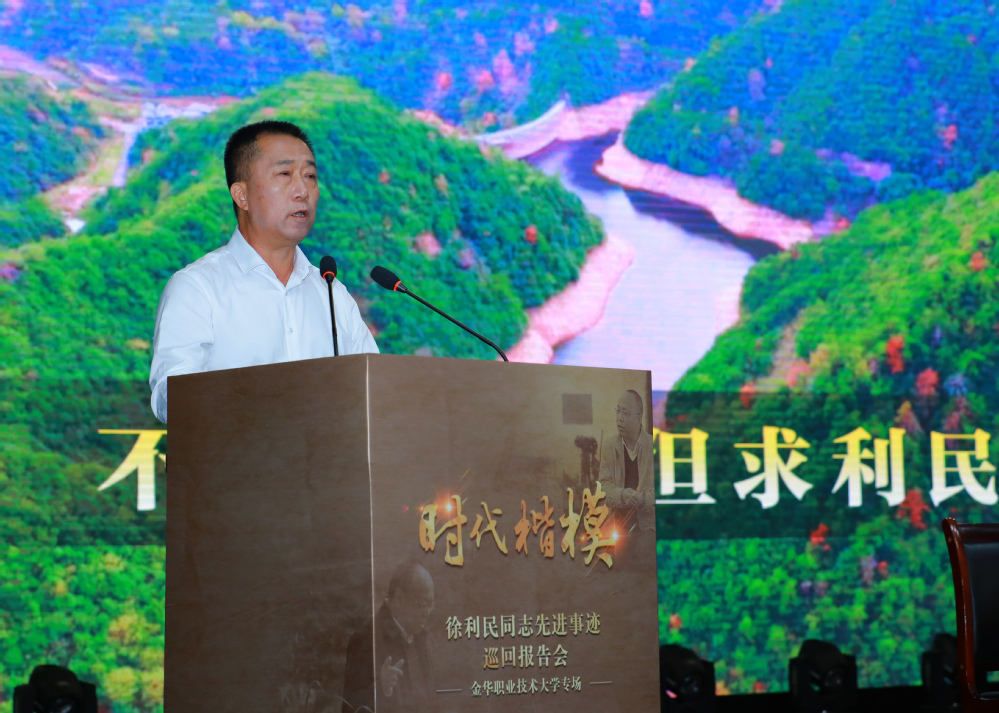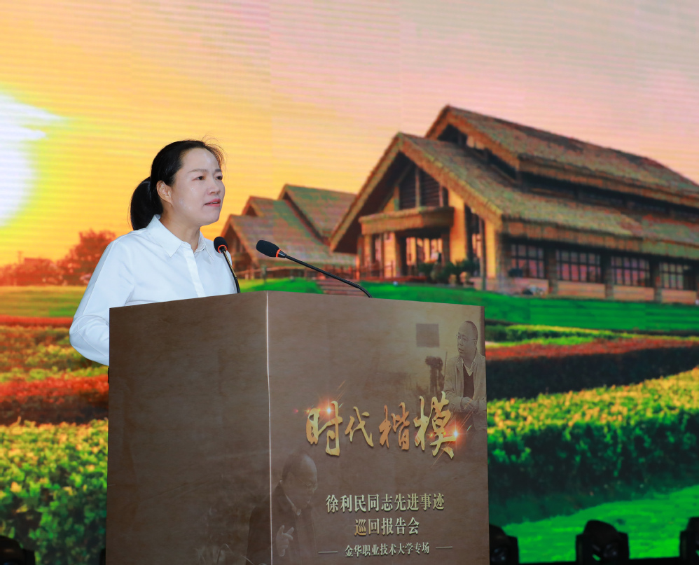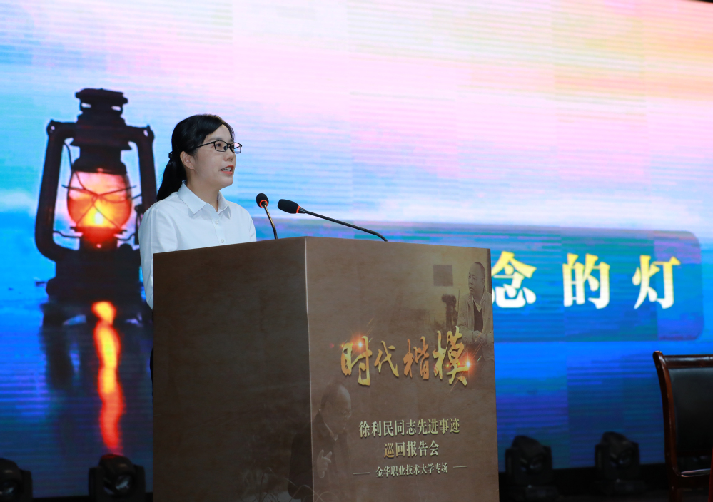 浙江省委宣传部宣教处二级调研员包新旺,金华市委宣传部宣教处处长应延亮,浦江县委宣传部副部长、社科联主席钟旭妙,金华职业技术大学党政领导班子成员出席报告会。学校党委副书记楼伟民主持报告会。学校各职能部门负责人、二级学院党政负责人、师生代表共计300余人齐聚现场聆听先进事迹,接受精神洗礼,感悟为民情怀,汲取前行动力。