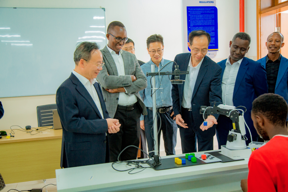 近日,浙江省政协副主席陈小平率团调研卢旺达鲁班工坊建设运行情况。卢旺达理工学院-穆桑泽学院校长艾米尔·阿巴伊森加、金华职业技术大学穆桑泽国际学院院长钱向明等陪同调研。