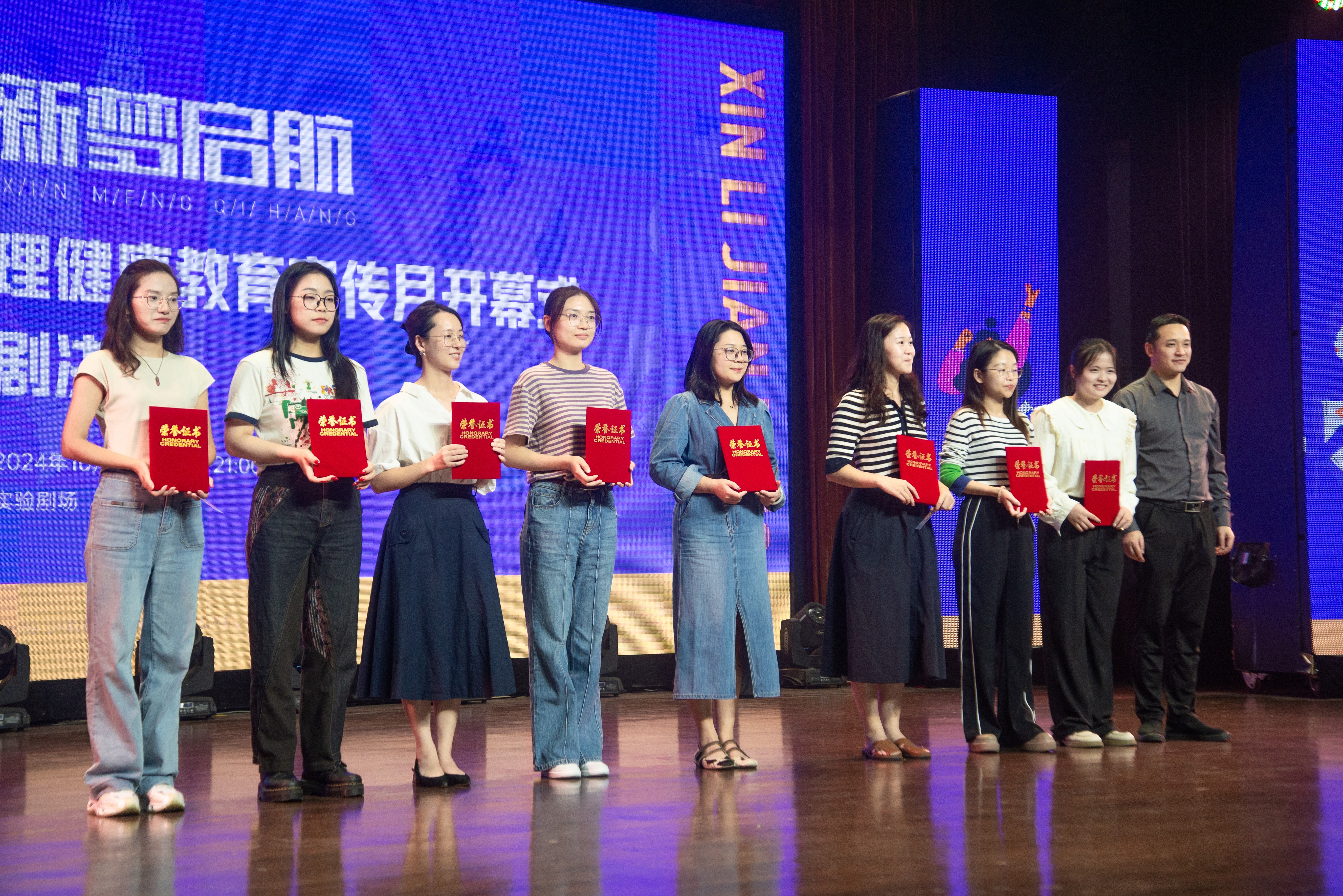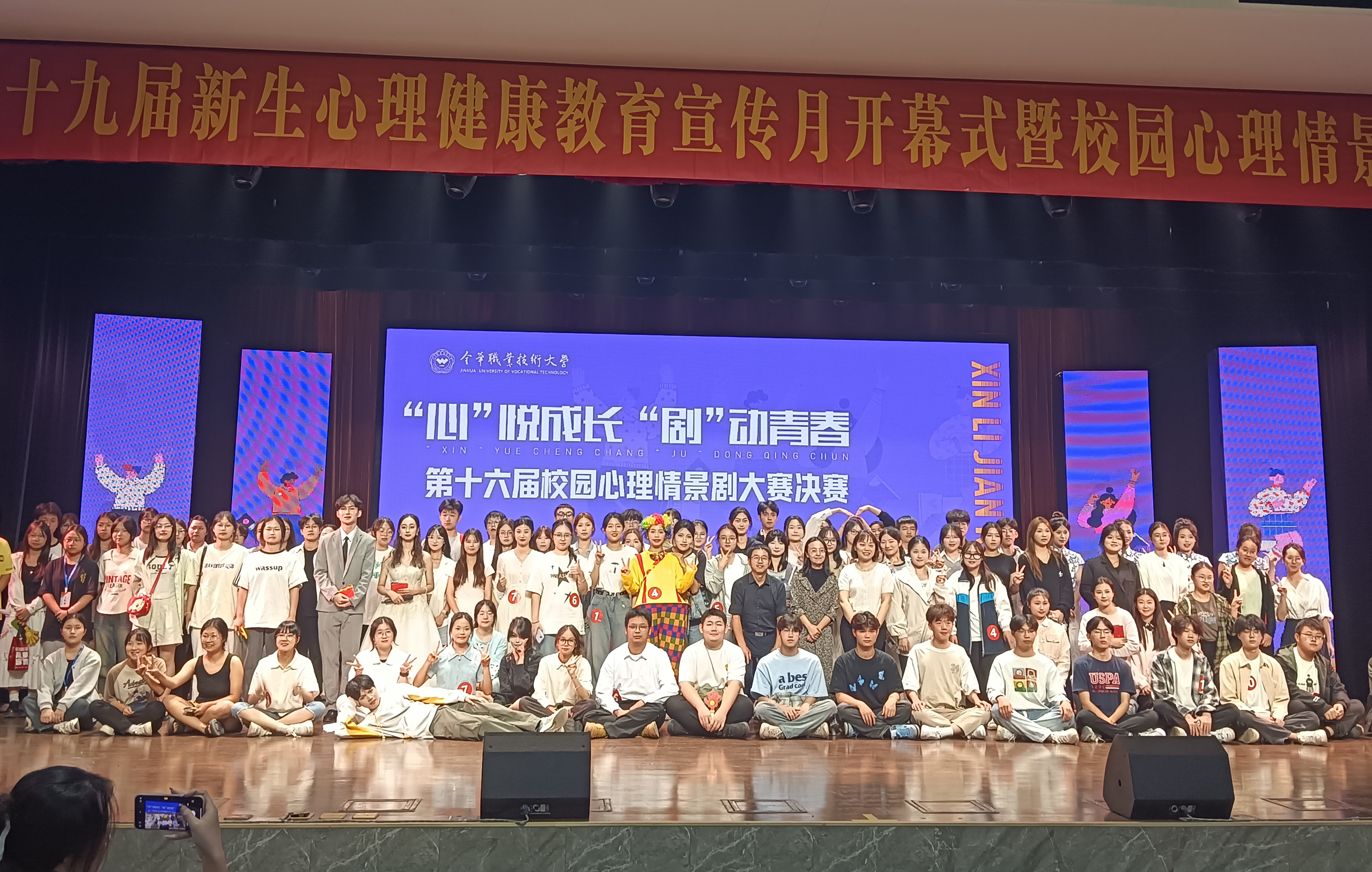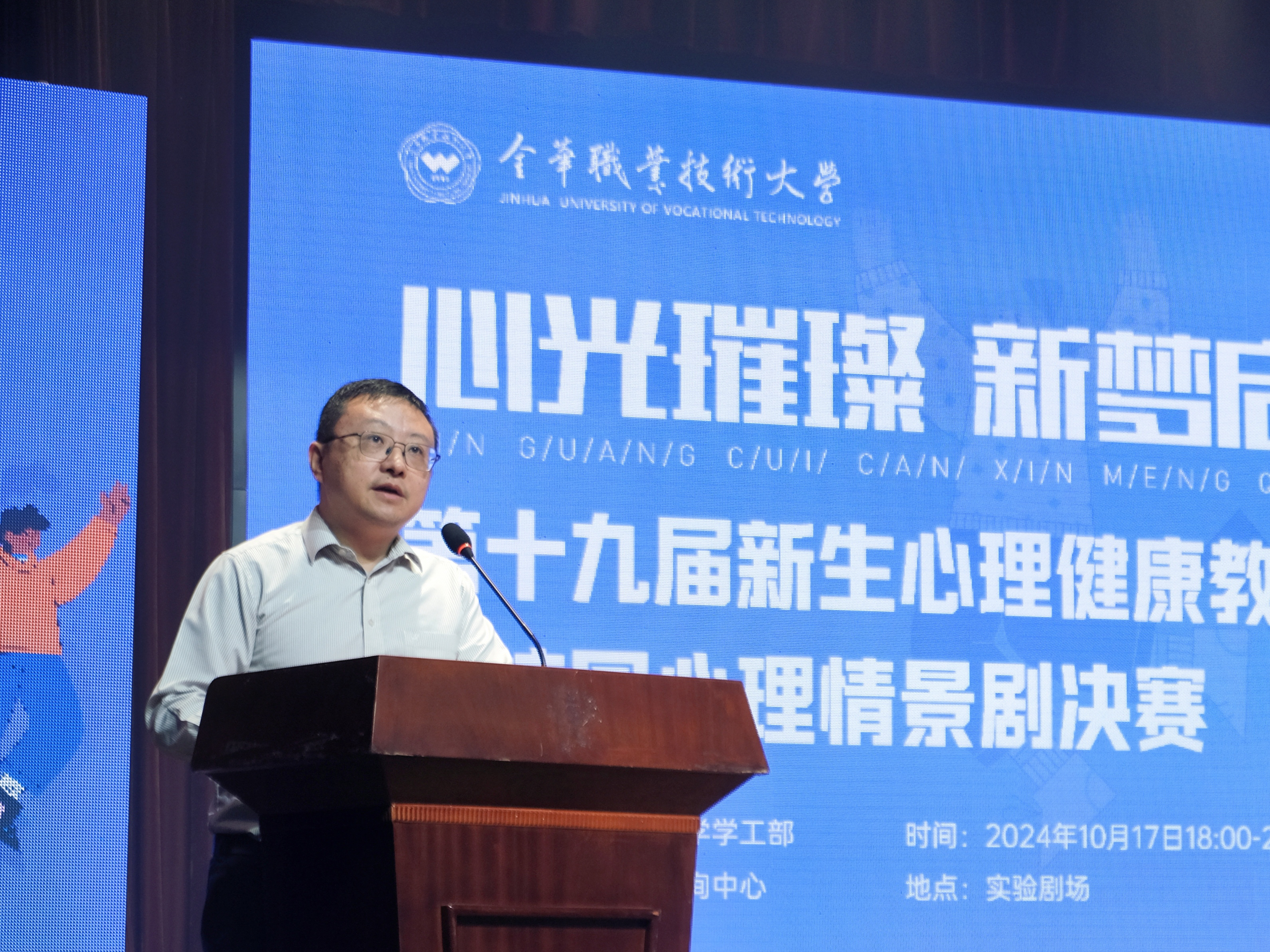 为推动校园心理健康文化建设,引导学生培养积极向上的心态,营造阳光健康的校园氛围,10月17日晚,金职大第十九届新生心理健康教育宣传月开幕式暨第十六届校园心理情景剧大赛决赛在实验剧场隆重举行。本次活动由学工部主办、心理健康教育咨询中心承办。学校党委副书记劳虓虓,宣传部、学工部、安保部、教务处、继教处、校团委、心理健康教育咨询中心负责人,各学院分管学生工作领导、学工办主任、心理辅导员,校心理健康教育咨询中心全体人员和学生代表近600人参加。