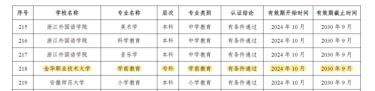 近日,教育部办公厅公布了2024年通过普通高等学校师范类专业认证及中期审核专业名单,金职大学前教育专业顺利通过师范类专业学前教育第二级认证。认证结论有效期六年,自2024年10月-2030年9月。