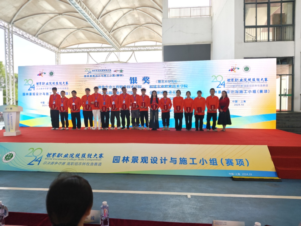 10月29日,2024年世界职业院校技能大赛园林景观设计与施工组(赛项)争夺赛在上海农林职业技术学院圆满闭幕。此次比赛吸引来自全国30个省、市、自治区的58所职业院校,共计232名选手同台竞技。由金华职业技术大学农学院汪仕洋、方英姿2位老师指导,江申怡、张博艺、刘雨菲、吴蒲4名学生组成的园林团队获得银奖。
