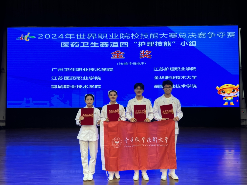 由金华职业技术大学医学院李春燕、方志美两位教师指导,项宇航、施梓橦、徐嘉悦、苏媛婷四位同学组成的参赛团队获得金奖。