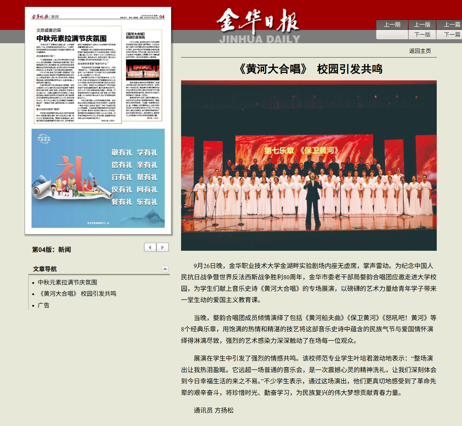 金华晚报:《黄河大合唱》 校园引发共鸣