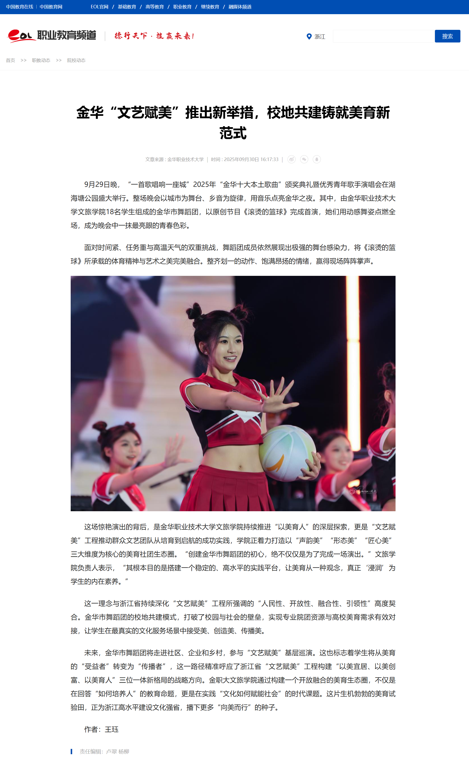 中国教育在线:金华“文艺赋美”推出新举措,校地共建铸就美育新范式