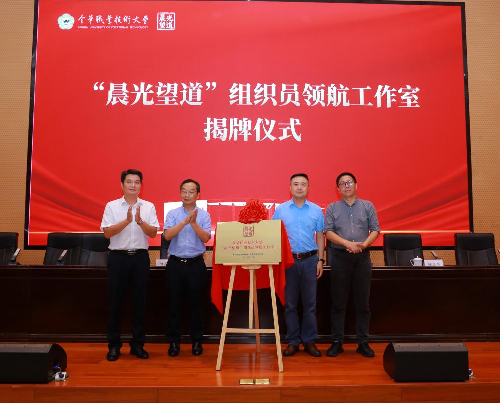 仪式上,金华职业技术大学党委副书记楼伟民,金华市直机关工委常务副书记何若伟,浙江大学马克思主义学院副院长陈宝胜、金华职业技术大学组织部部长董晓晨共同为“晨光望道”组织员领航工作室揭牌,标志着组织员队伍建设上又迈出了坚实的一步。