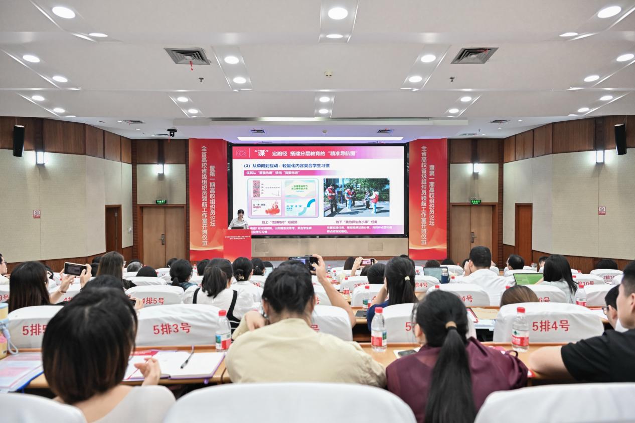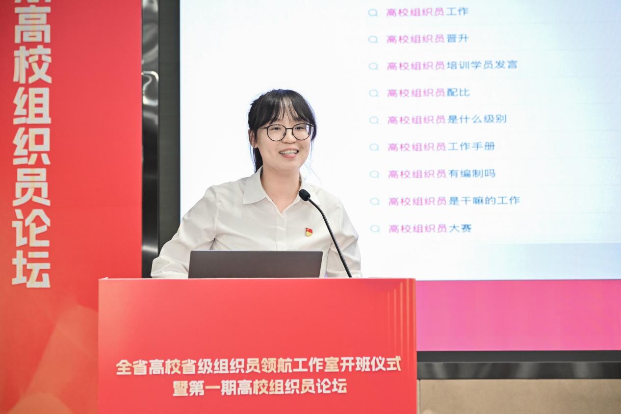 开班仪式后,第一期高校组织员论坛举行。我校“四强”组织员培养对象金遥遥以《研·谋·创·鉴—将组织工作做到学生心里》为题进行了交流分享。她围绕高职院校学生党员发展与教育的系统困境,从“研准脉搏,锚定学生群体的‘成长坐标系’”“谋定路径,搭建分层教育的‘精准导航图’”“创新标尺,打造考核评价的‘透明度量衡’”“鉴往知来,提炼实践经验的‘成长启示录’”四个维度出发,分享了高职院校学生党员教育管理的经验做法,展现了我校组织员队伍“实务能办、难题能解、品牌能创”的专业素养和精神风貌。