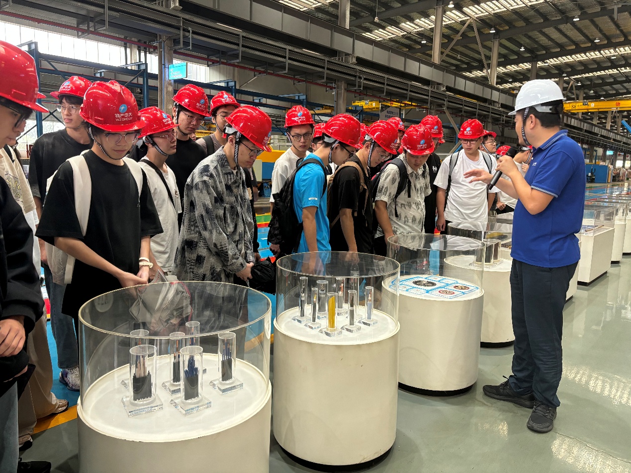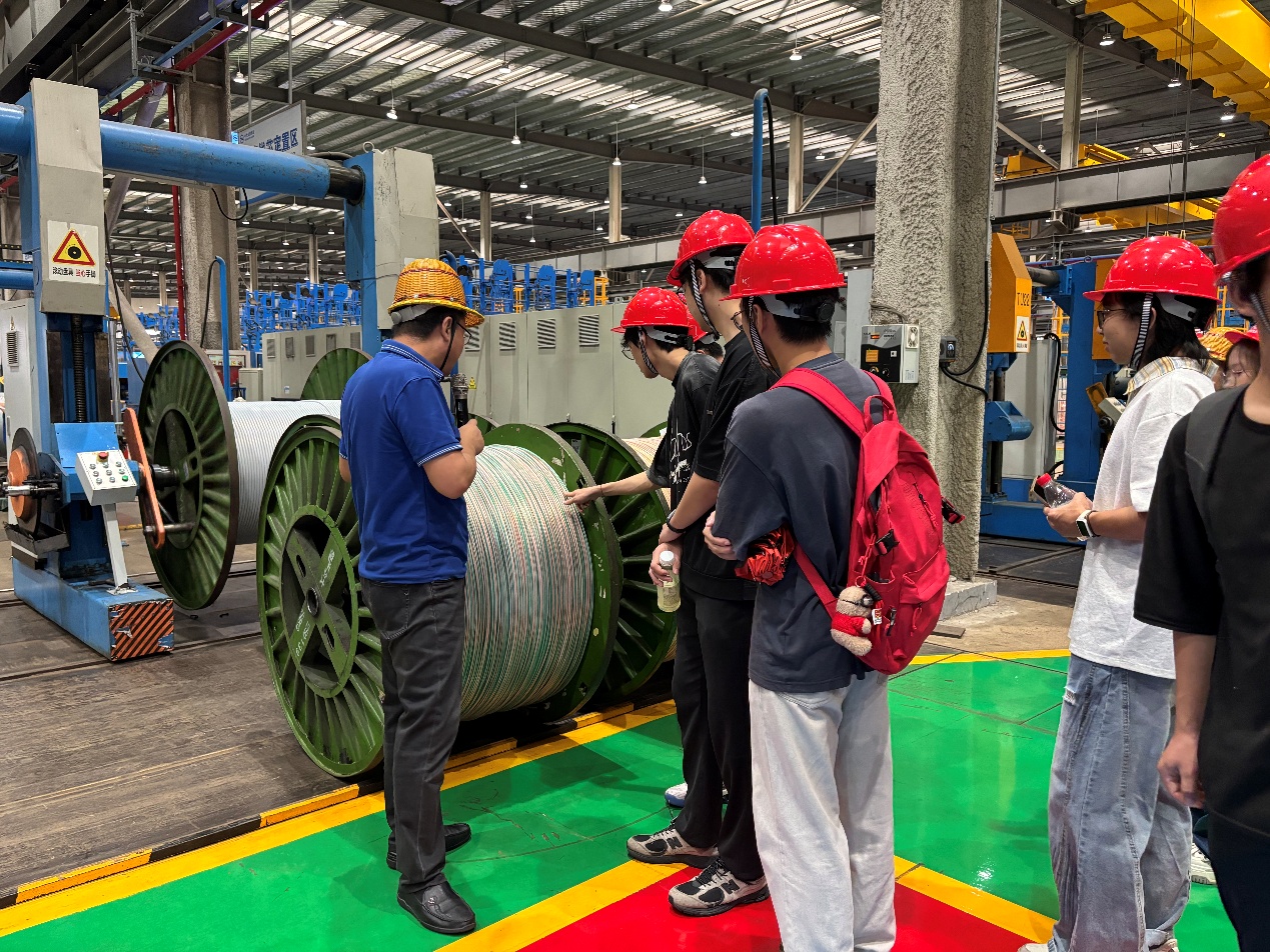 公司相关负责人陶萍华带领同学们走进企业,深入体验公司独具特色的企业文化,并分组参观线缆生产基地。从特种线缆车间到电线车间,再到橡套线缆车间,大家全程沉浸式了解线缆生产的各个环节,亲眼见证了从原材料到成品的完整制造流程。通过此次参观,同学们不仅直观感受了现代化制造业的智能生产与高效运作模式,也进一步理解了“未来工厂”背后所蕴含的科技力量与工匠精神。