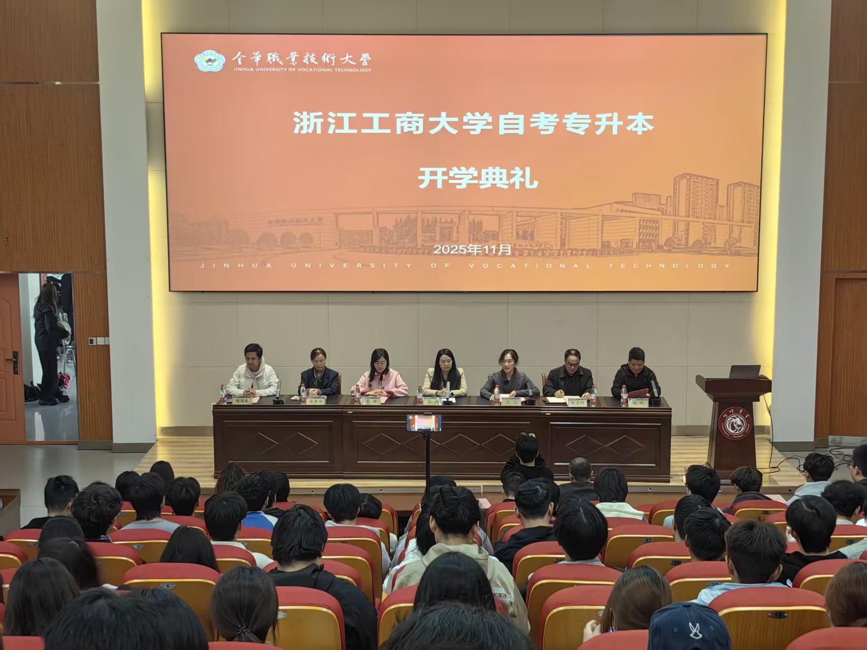 11月12日,金华职业技术大学与浙江工商大学共同举办的2025级自考本科助学班开学典礼在金职大举行,武义学院同学在武义校区分会场观看直播。浙江工商大学继续教育学院副院长张利,金华职业技术大学成人教育学院负责人,信息工程学院、智能制造学院、航空工程学院、商学院、文旅学院相关负责人,浙江工商大学自考办负责人,浙江吉博教育科技有限公司网络学习平台教务老师,以及2025级全体新生和相关班主任参加。