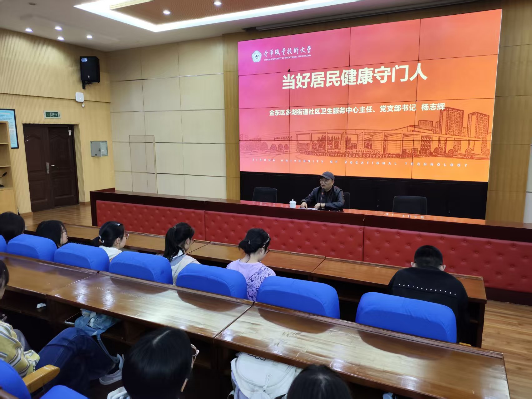 仪式结束后,杨志辉结合党的二十届四中全会精神为师生们带来了题为“当好居民健康守门人”的精彩分享,他结合自身从医三十余年的成长经历,围绕“健康守门人”的职责与使命,强调了全科医学在“健康中国”战略和积极应对人口老龄化背景下的重要意义,并指出医学不仅是技术的运用,更是人文的关怀。杨志辉鼓励同学们树立“以人民健康为中心”的服务理念,将来还可以投身于医养服务与管理事业,做有温度、有情怀的健康守护者。