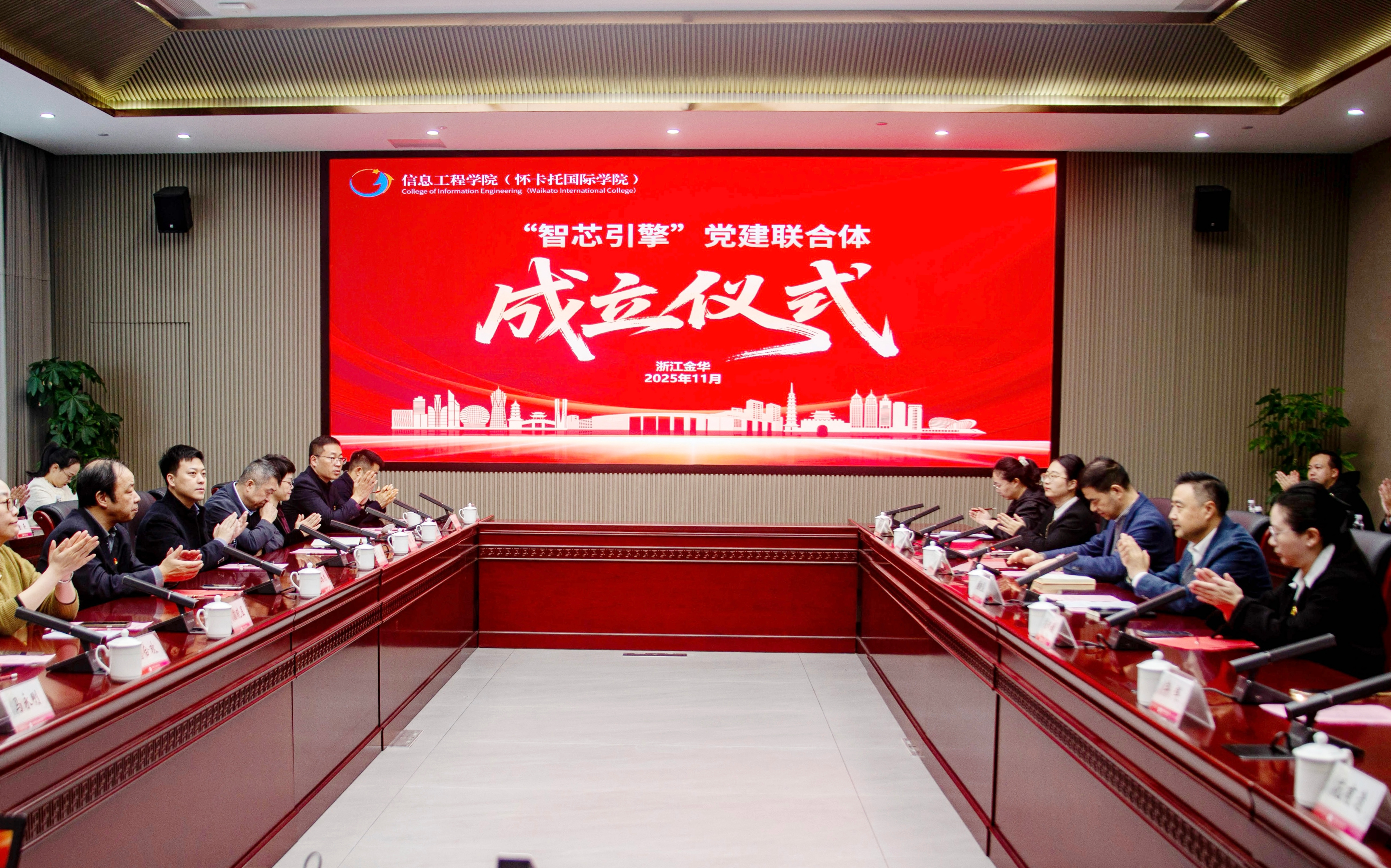 11月15日上午,由信息工程学院(怀卡托国际学院)牵头组建的“智芯引擎”党建联合体成立仪式在明学会议室举行。来自政府单位、学校、行业协会及优质企业的20余家联合体单位代表齐聚金职大,共同见证这一跨领域党建协同平台的启航。校党委委员、组织部部长董晓晨,组织部、信息工程学院相关人员参加会议。